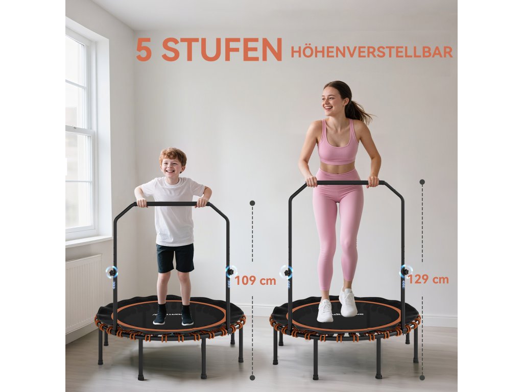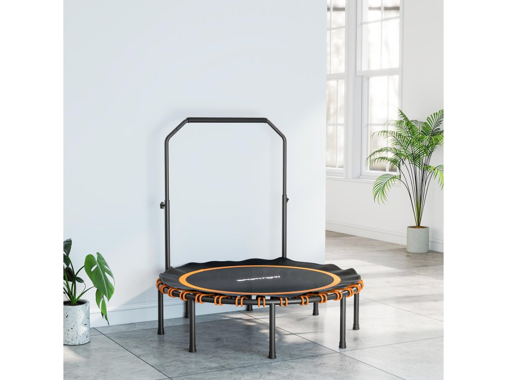 Nastavitelné madlo: Optimalizujte si zážitek z mini trampolíny s 5úrovňovým madlem, které nabízí větší stabilitu a bezpečnost, zejména pro začátečníky a seniory, a zvyšuje sebevědomí s každým skokem. Madlo lze v případě potřeby také odejmout.