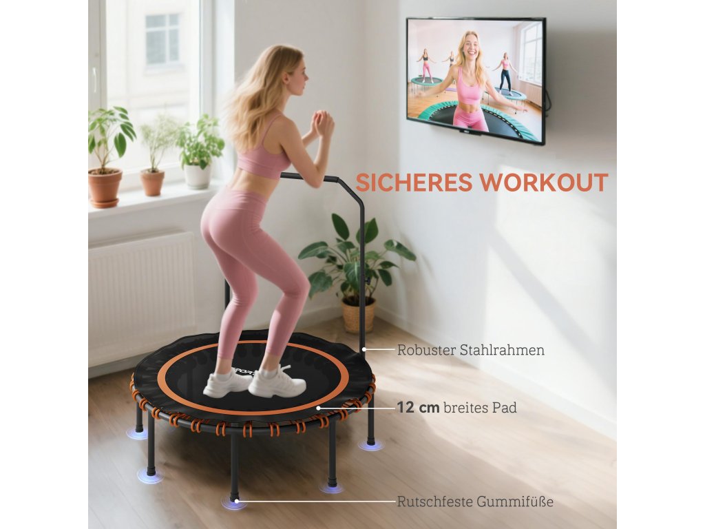SPORTNOW Fitness trampolína s nastavitelným madlem, pro vnitřní i venkovní sporty, ocel, plast, oranžová