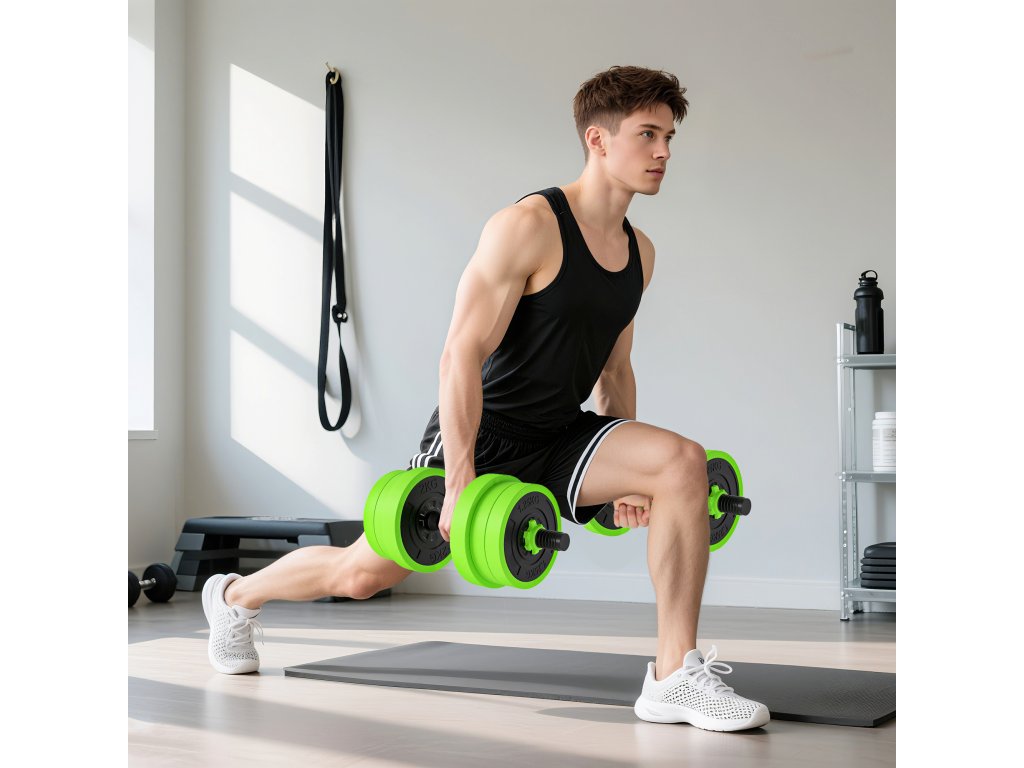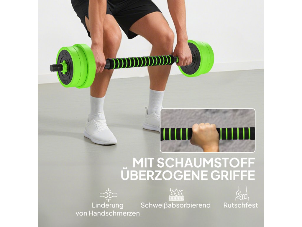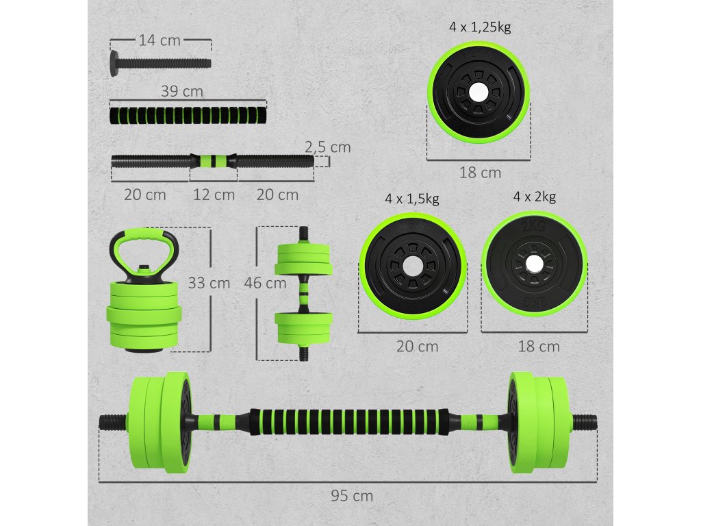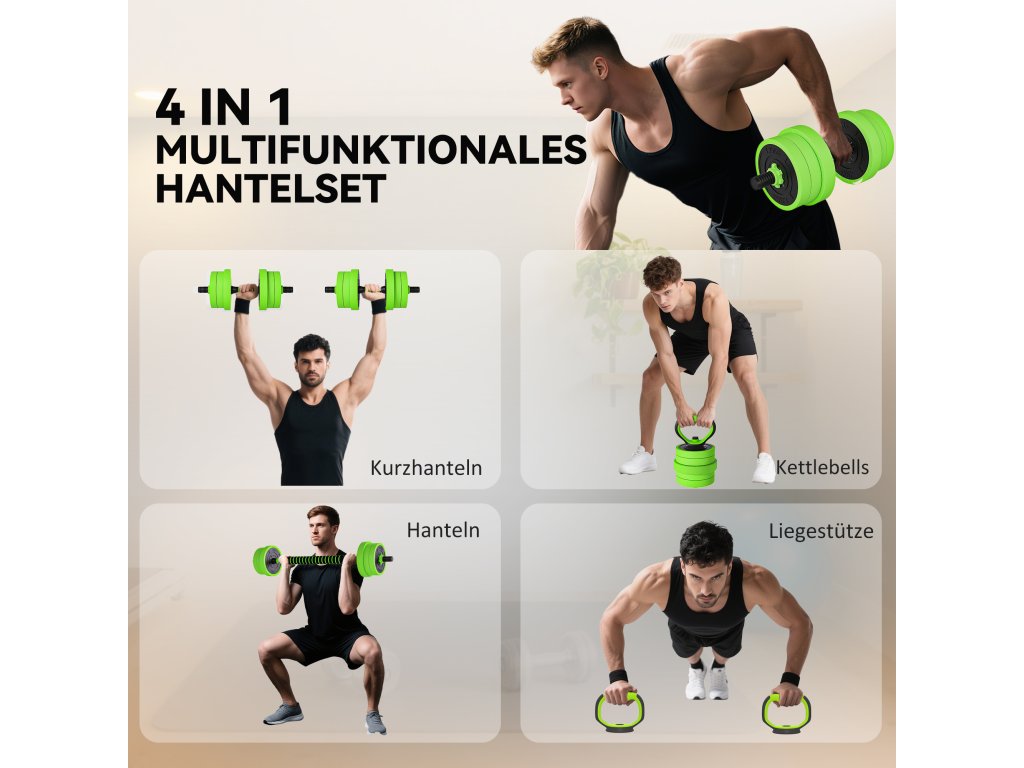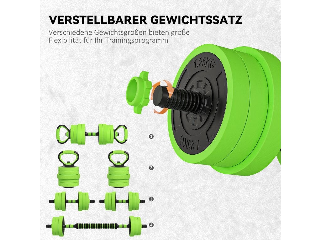 SPORTNOW Sada činek 4 v 1 20 kg Nastavitelná činka a činka Kettlebell Push-up Grips Green