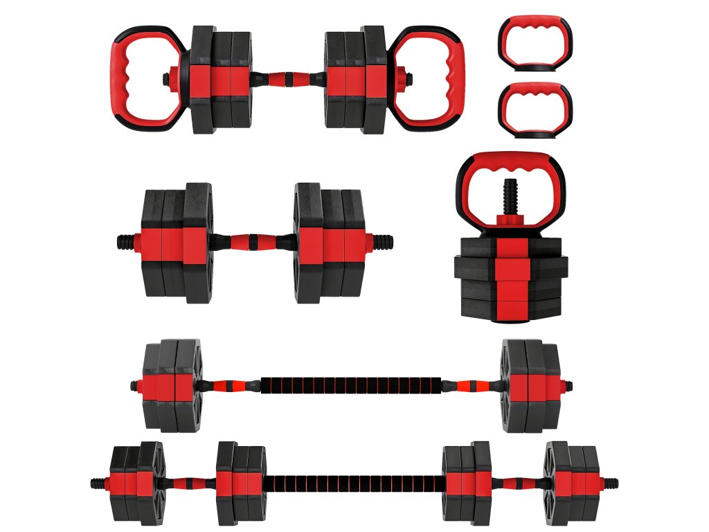 - sada 6 v 1: činky, bradla, kettlebelly a kliky ✔ 20 kg