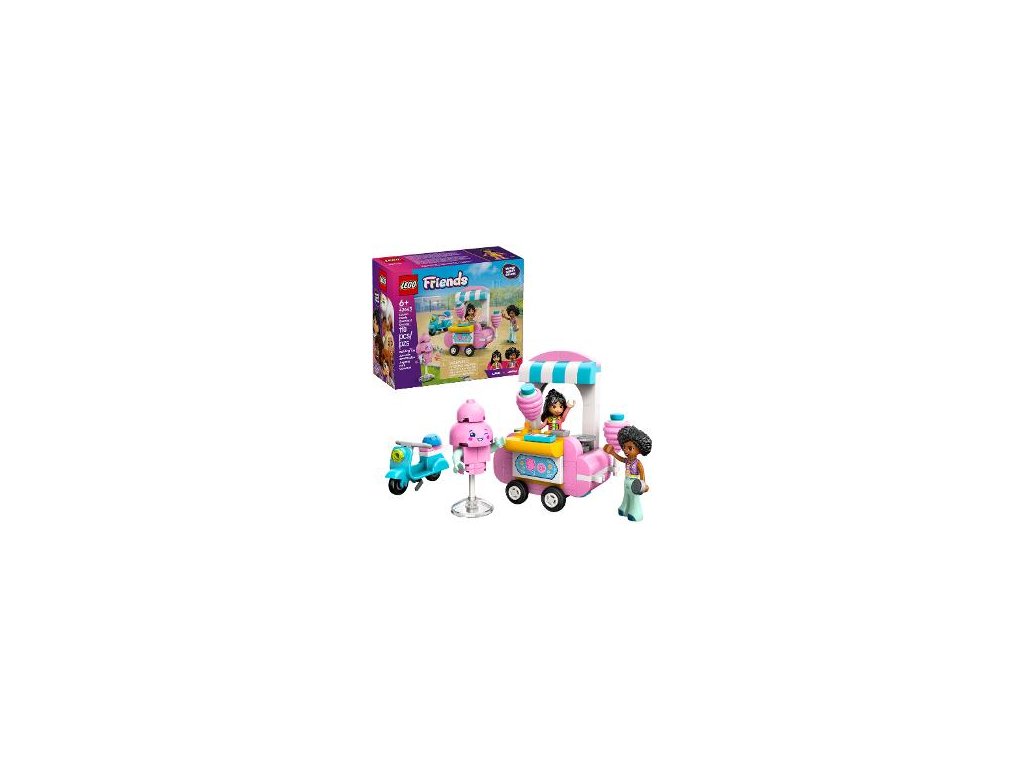 Stavebnice LEGO® Friends Stánek s cukrovou vatou a skútr pro holky, kluky a malé stavitele od 6 let obsahuje 2 minipanenky, stánek s občerstvením a skútr se stojánkem