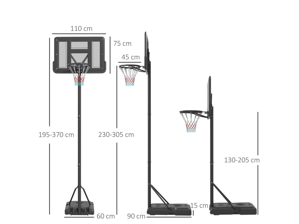 - Nastavitelná výška: Náš basketbalový stojan je přenosný a nastavitelný. Nastavte výšku koše tak, aby vyhovovala věku, velikosti a herní úrovni každého hráče