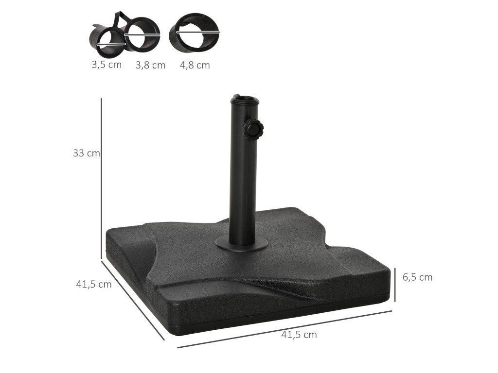 Vynikající deštník je pro váš slunečník nezbytný. Náš podstavec pro slunečník bude stát na místě a stabilizuje váš slunečník. Náš podstavec pod slunečník je vyroben z vysoce kvalitní oceli a je dostatečně odolný pro dlouhodobé používání. Lze ji umístit na mnoho míst, například na zahradu, terasu, balkon nebo k bazénu. Díky elegantnímu černému provedení je podstavec stylově navržen tak, aby zkrášloval váš domov. Tato základna se dodává s potřebným příslušenstvím a její instalaci si můžete snadno provést sami.