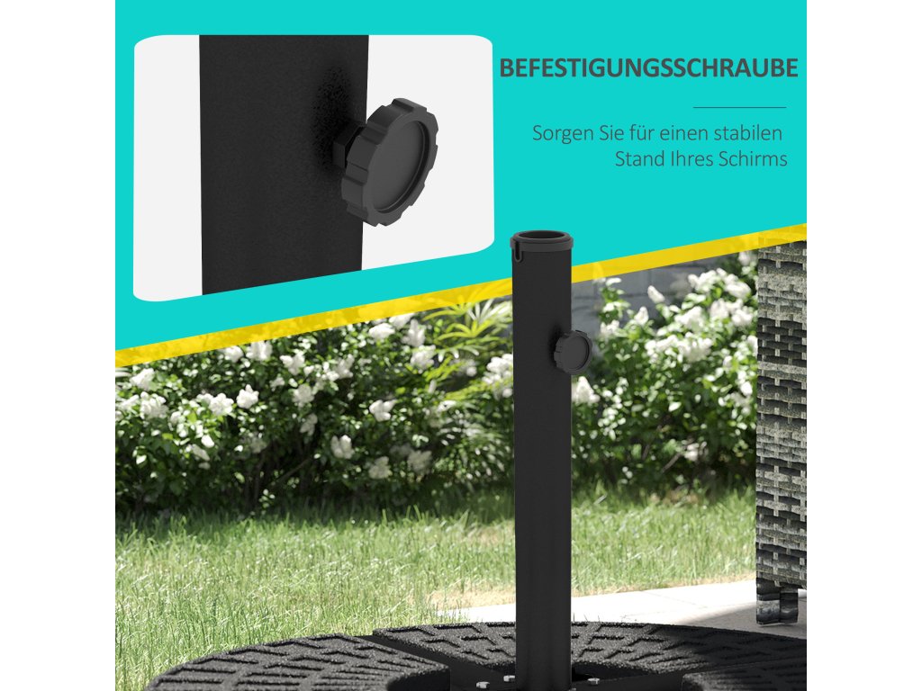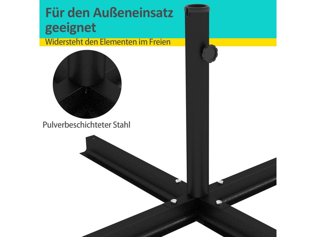 - vhodný pro malé konzolové slunečníky a velké tržní slunečníky s průměrem tyče 38 mm až 48 mm