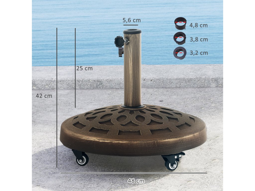 Stojan na slunečník Outsunny z betonu, stojan na slunečník s kolečky, kulatý stojan na slunečník 32/38/48mm