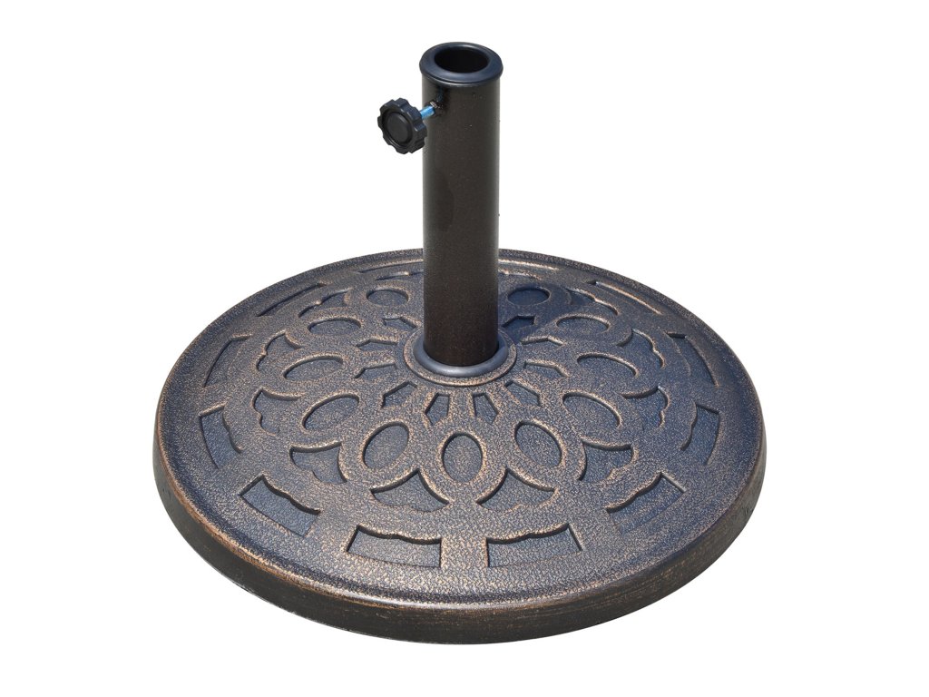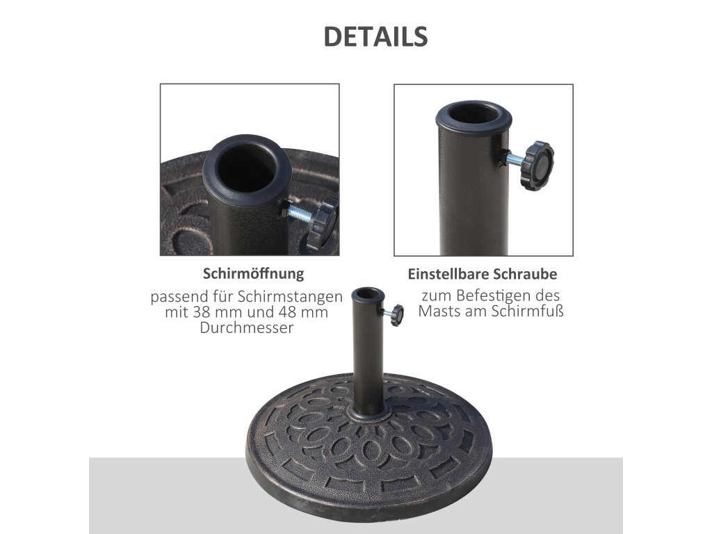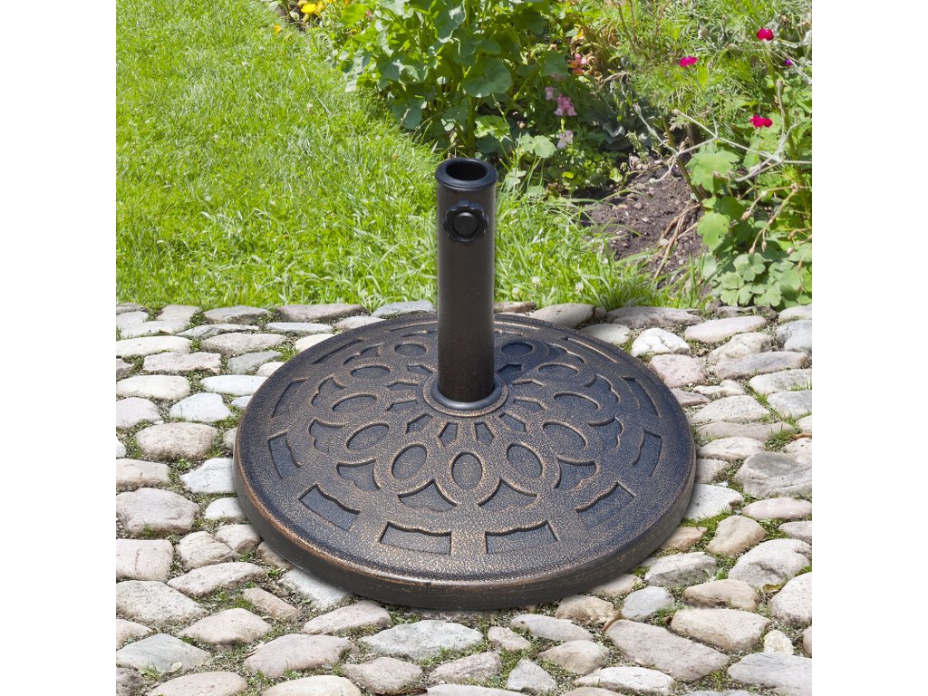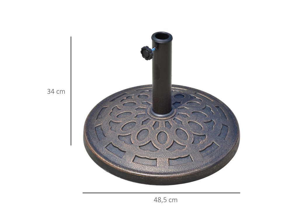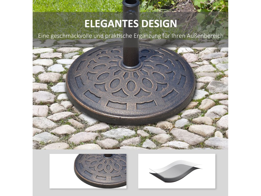 Stojan na slunečník Outsunny z pryskyřice 14 kg, kulatý držák na slunečník, závaží na slunečník o průměru trubky 38 mm/48 mm, na balkon, terasu, zahradu, bronzový