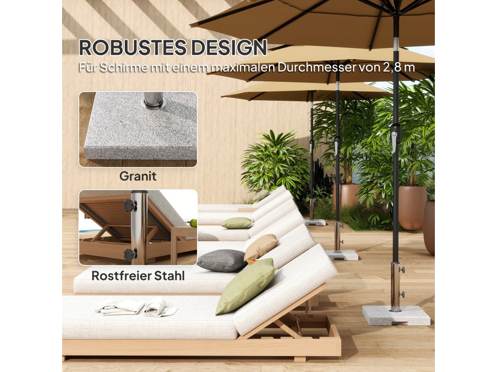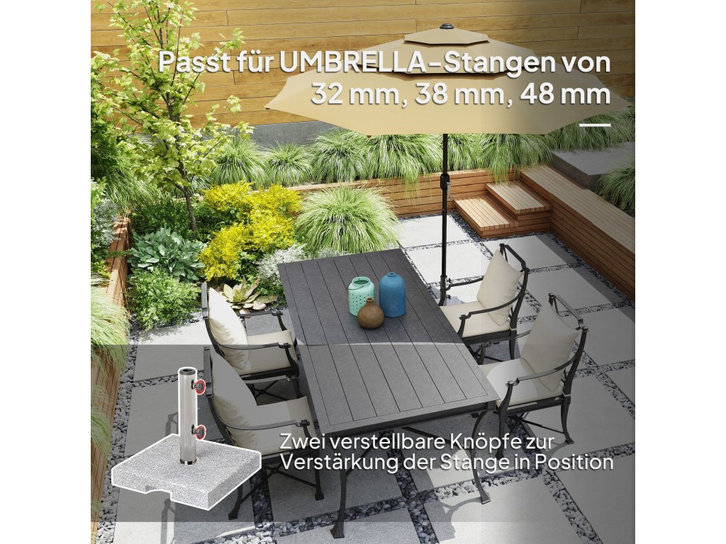 - ✔ Stojan na slunečník z žuly odolný proti povětrnostním vlivům nabízí hmotnost 21 kg