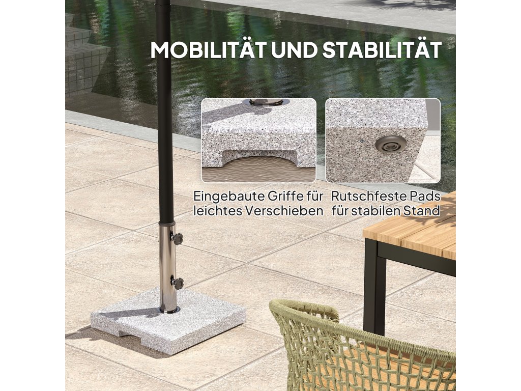 Stojan na slunečník Outsunny ze žuly 21 kg, čtvercový držák slunečníku, závaží na slunečník 32/38/48 mm