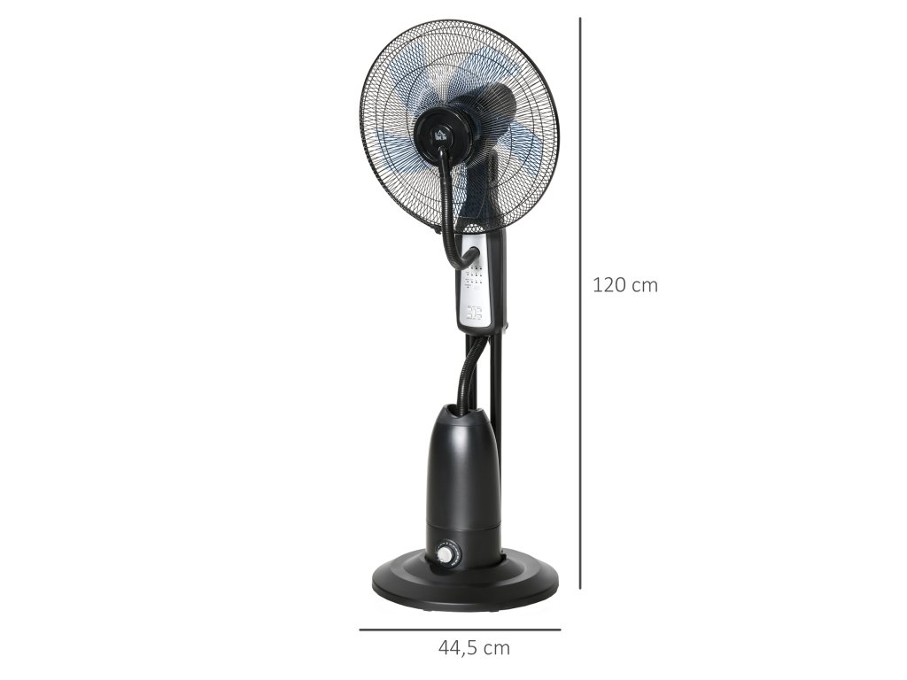 Stojanový ventilátor s 2,8litrovým vodním atomizérem, časovačem, 3 režimy, funkcí mlhy a nastavitelným úhlem náklonu pro osvěžující chlazení