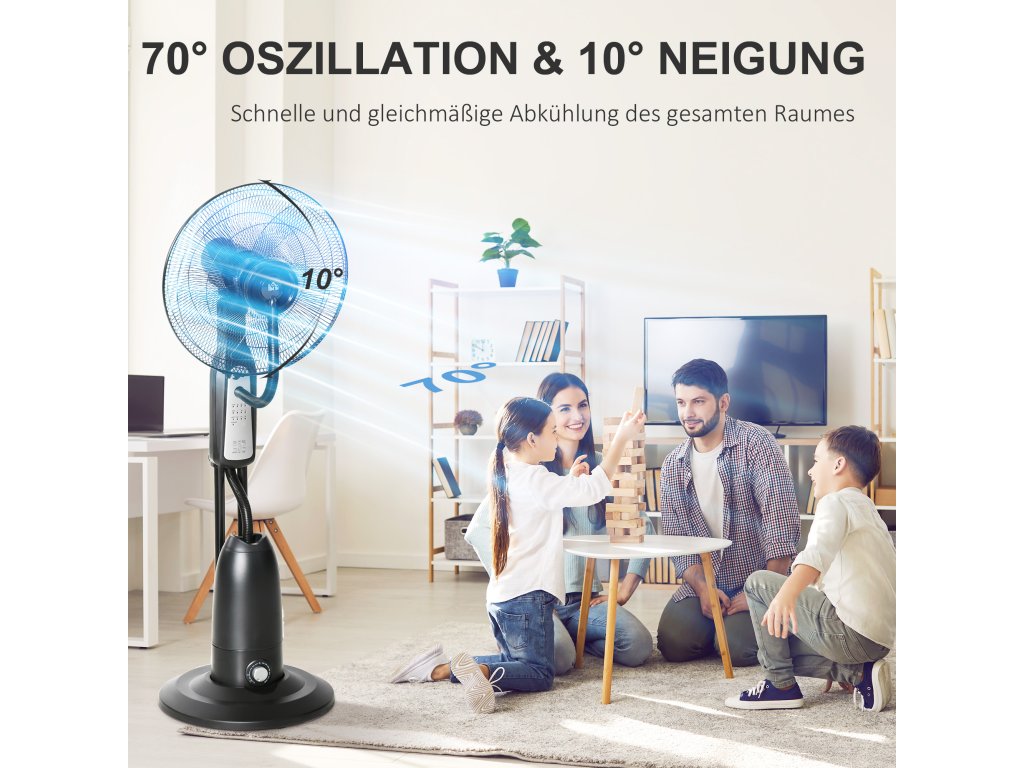 Náš vodou chlazený stojanový ventilátor je ideální pro horké a dusné prostředí. Toto cenově výhodné a vysoce účinné chladicí řešení pro velké i malé místnosti v horkých dnech lze individuálně nastavit. Široký rozsah otáčení rychle nahradí teplý, dusný vzduch čerstvým vánkem. Časovač, který lze nastavit až na 7,5 hodiny, a dálkové ovládání umožňují pohodlné ovládání.