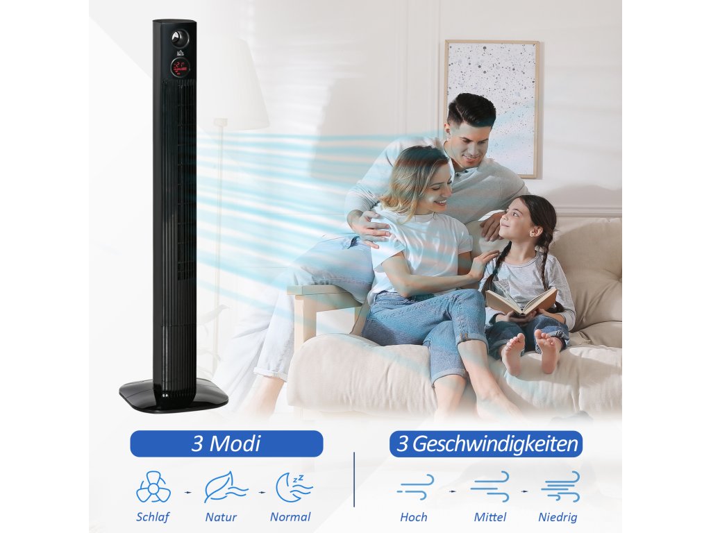 NASTAVITELNÉ CHLAZENÍ A PÁRA: Sloupový ventilátor se přepíná mezi 3 rychlostmi (nízká/střední/vysoká) a 3 režimy (normální/přirozený/spánek), takže snadno najdete nastavení, které vám nejlépe vyhovuje. Je také vybaven aroma difuzérem pro vytvoření příjemné vůně v místnosti.