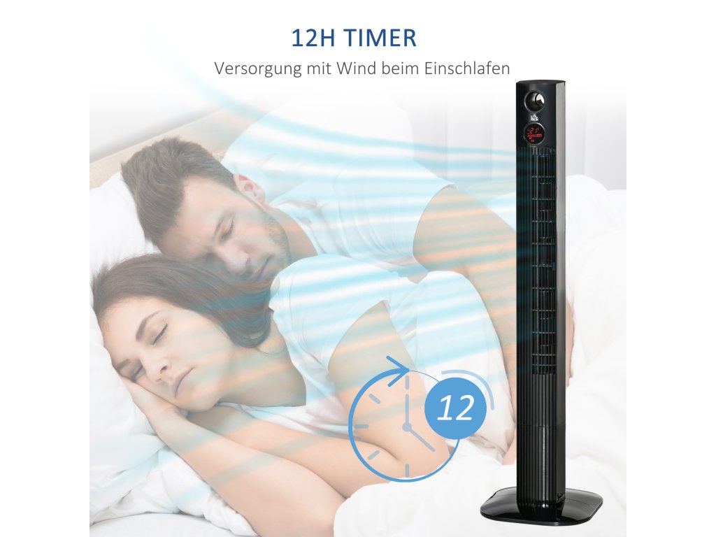 12HODINOVÝ ČASOVAČ: Tento sloupový ventilátor je vybaven 12hodinovým časovačem, který umožňuje naplánovat chladicí cyklus. Poskytuje jemné větrání během spánku a automaticky se vypíná, aby se šetřila energie.