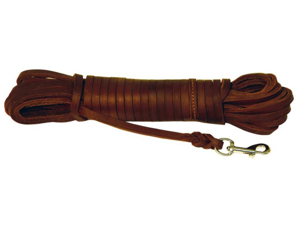 Stopovací vodítko pro psa, vhodné pro výcvik a stopování, ušité z jednoho kusu kvalitní kůže, s pevnou nerezovou sponou, šířka 8 mm, délka 10 m.