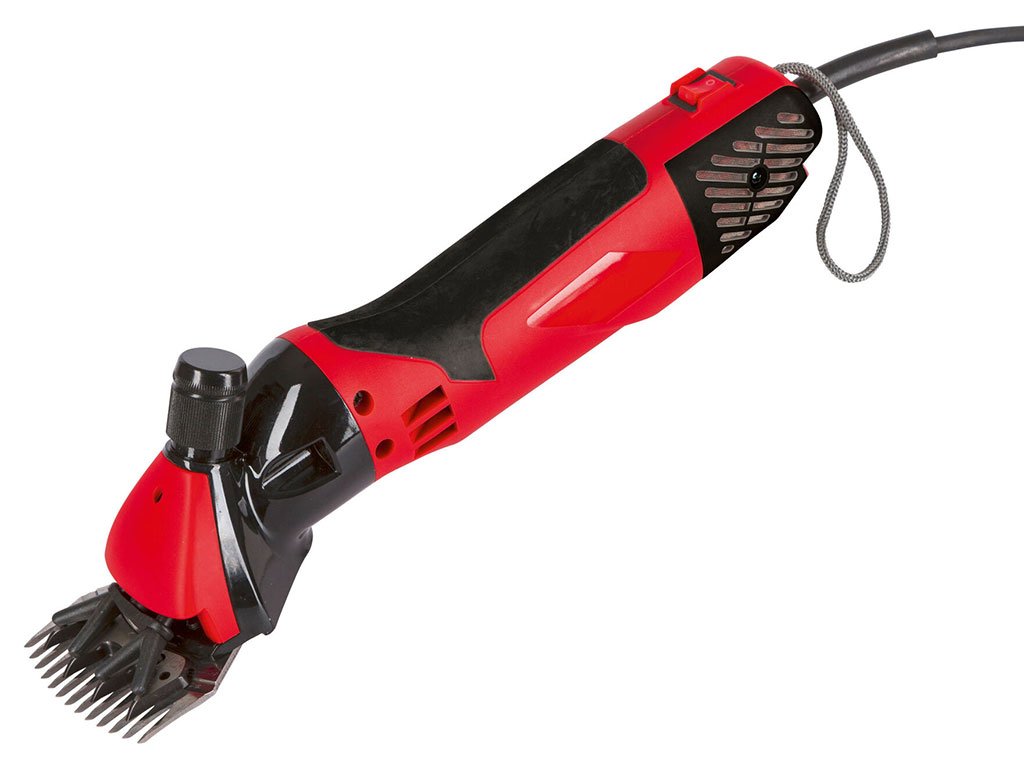 Profesionální stříhací strojek, pro ovce, lehký a dobře ovladatelný, sada nožů 13/4 zubů, vysoká a nastavitelná rychlost střihu, 2400 dvojitých zdvihů/min, velmi výkonný motor 350 W, 6 rychlostí, délka napájecího kabelu 5,5 m.