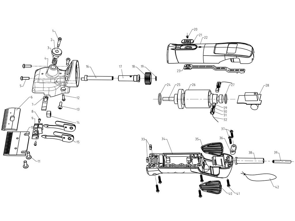 Univerzální stříhací strojek, pro skot a koně, s vylepšenými střihacími noži, sada nožů 31/15 zubů, poradí si i se znečištěnou srstí, ergonomický design, rychlost střihu 3000 kmitů/min, výkonný motor s výkonem 200 W, délka napájecího kabelu 5 m.