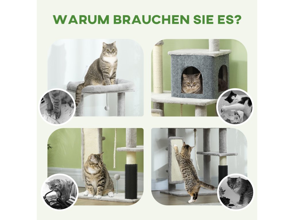 - Vše v jednom: Tento kočičí strom nabízí škrabadlo, pelíšek, lákavý kočičí domeček a různé úrovně. Součástí balení je také kartáč na péči a hrací doplňky, které jsou ideální pro zábavu a pohodu vaší kočky