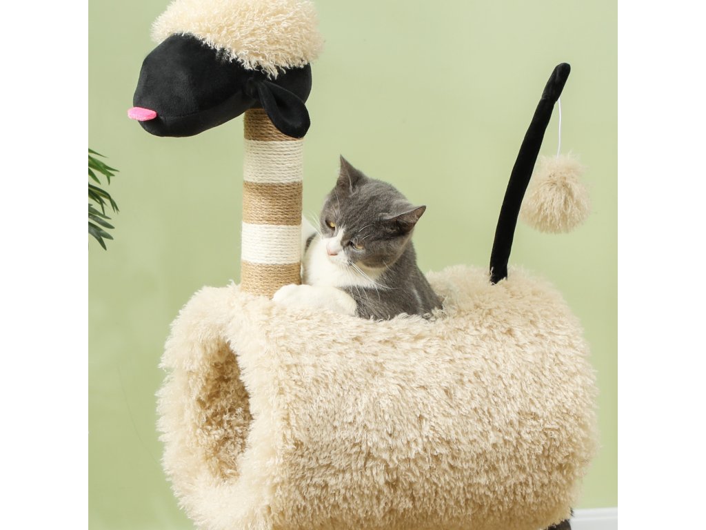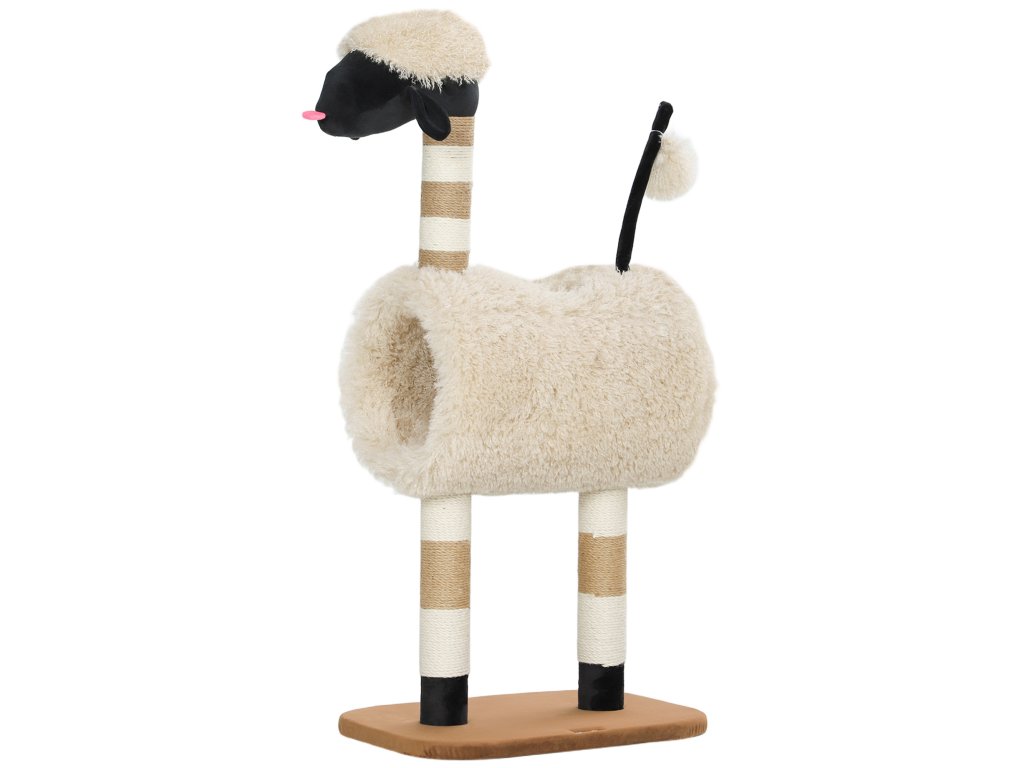 Strom pro kočky PawHut v designu ovce, se škrabadlem, tunelem a hračkou, 98 cm, světle hnědý