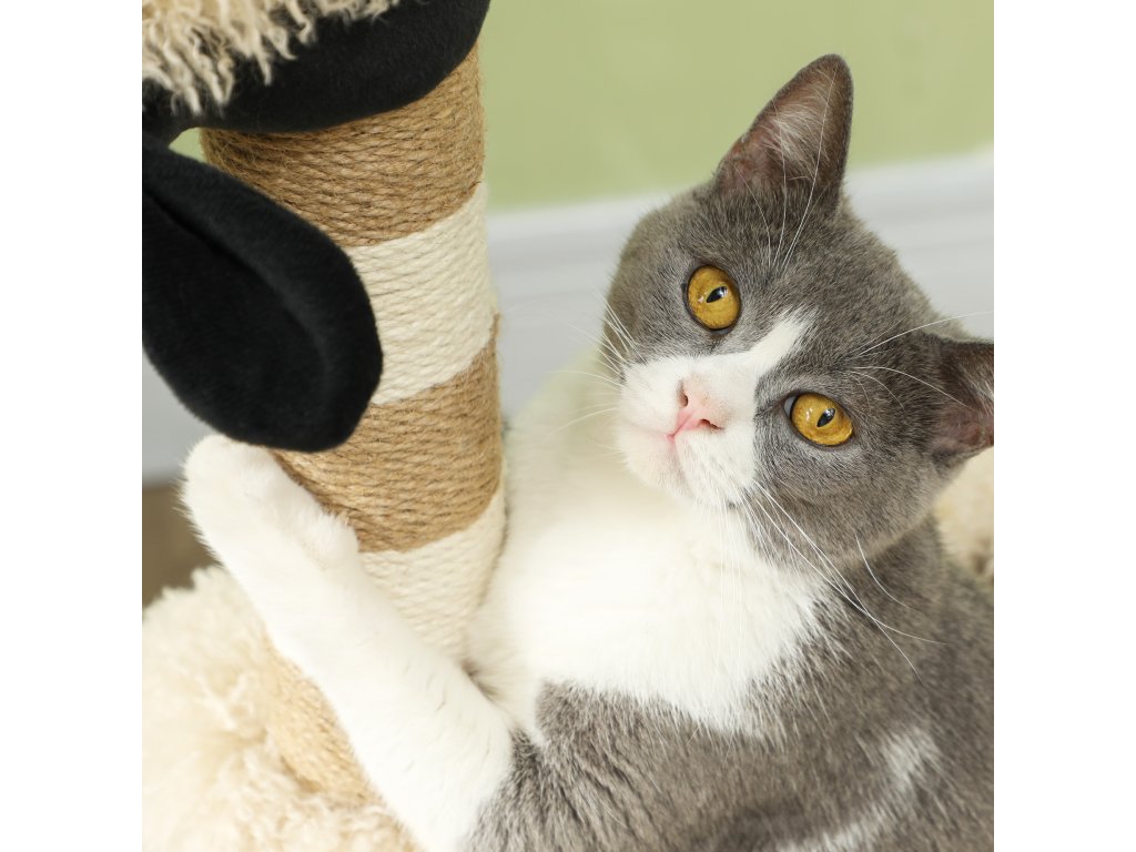 - Rozkošný design s černým nosem a ovcí: Tento kočičí strom se vyznačuje výrazným designem s černým nosem a ovcí, který nejenže dodá vašemu domovu okouzlující nádech, ale také poskytne vaší kočce zábavné místo na hraní.