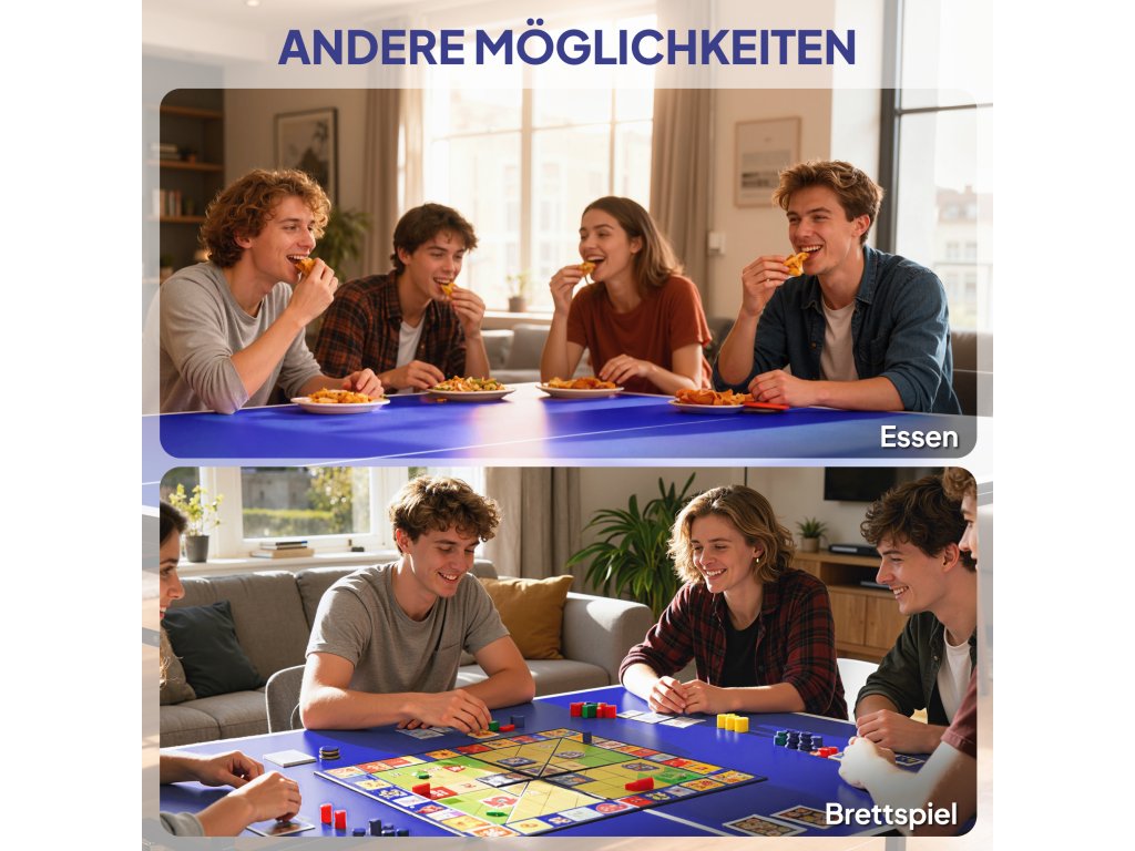 - Multifunkční design: Odstraněním síťky přeměňte stůl na stolní tenis na prostorný venkovní jídelní stůl nebo jednu polovinu stolu sklopte a vytvořte tak úložný prostor pro své hosty