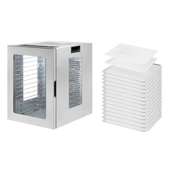 Sušička potravin FD 4012 vyniká profesionálním vzhledem, ale i funkční výbavou: je nerezový uvnitř i vně, kompletně bez plastů, má kvalitní dílenské zpracování, sušicí plata snadno vytáhnete a neposlední řadě má skleněné průhledy ze všech stran, abyste viděli dovnitř. Ovládání je plně dotykové, k dispozici je vnitřní světlo, teplotní rozsah 35–75 °C a sušení až po dobu 48 hodin.
