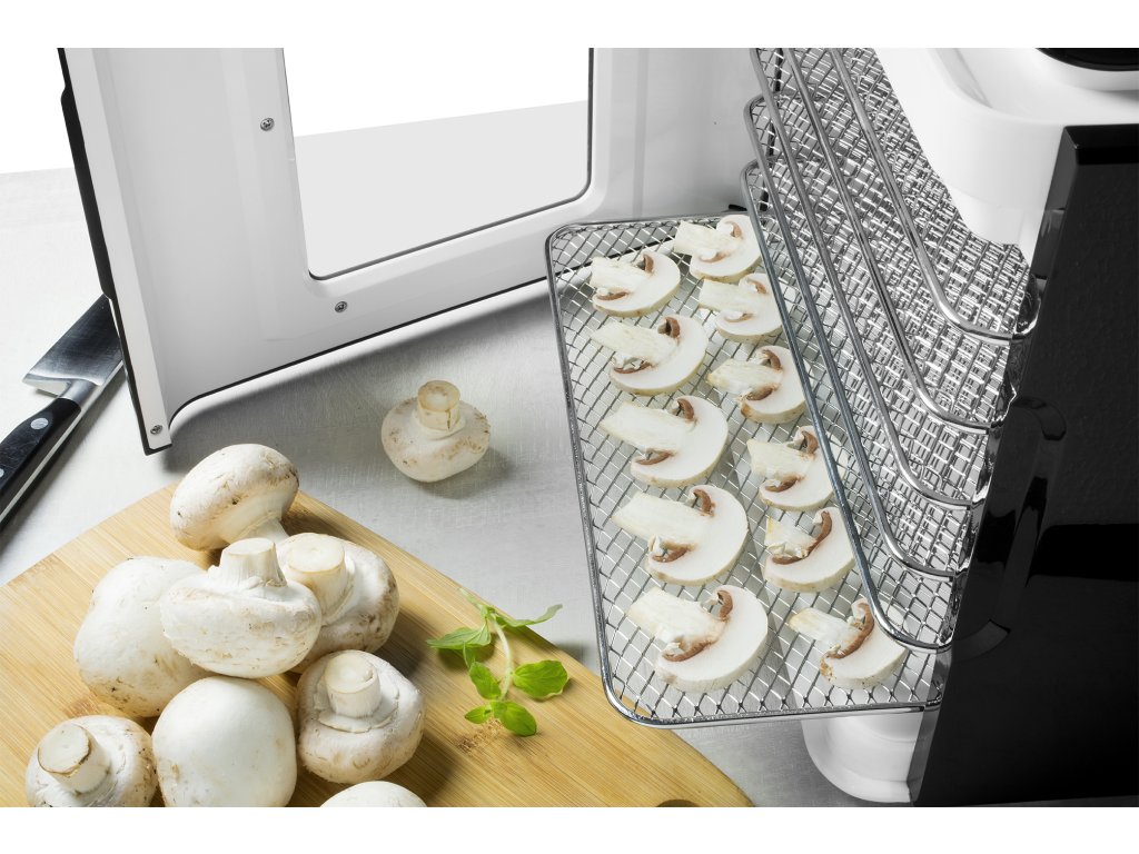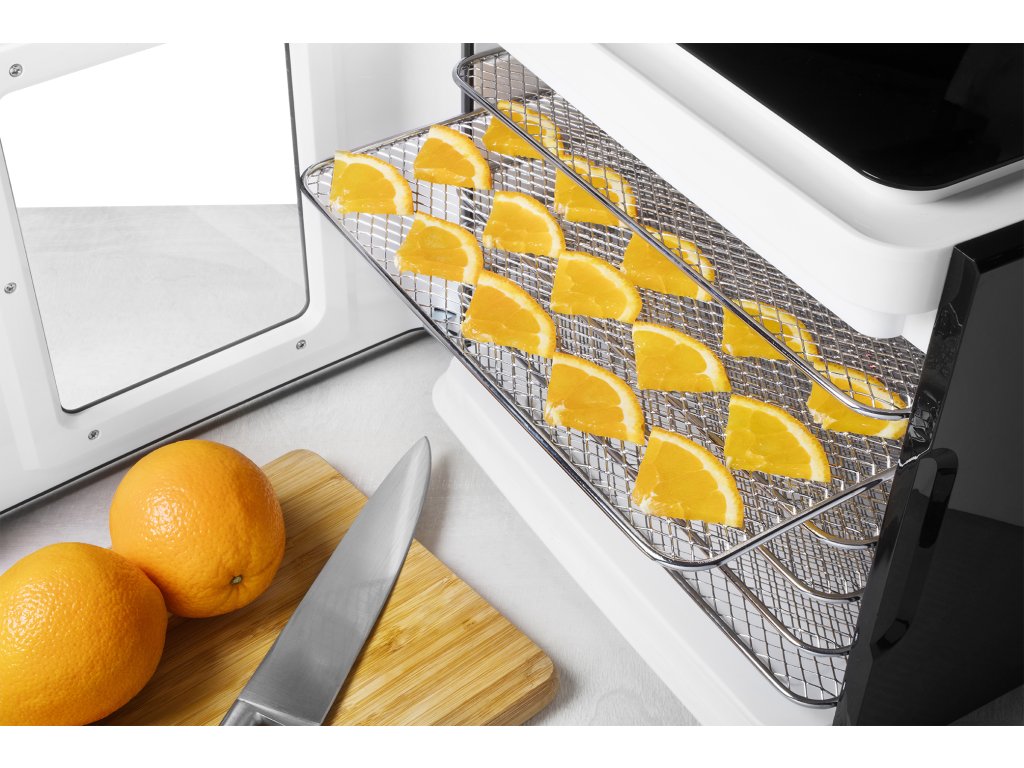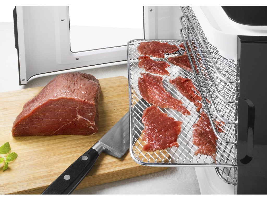Svěřte úkol uchování potravin jako ovoce, zeleniny, masa, bylinek a dalšího naší sušičce Philco PHFD 7067. Perfektního výsledku dosáhnete díky silnému motoru, který rozproudí teplý vzduch rovnoměrně celým vnitřním prostorem sušičky, a vy se nebudete muset starat naprosto o nic krom počátečního nastavení doby přípravy a teploty.Díky horizontálnímu proudění vzduchu je teplota ve všech úrovních stejná a vy se nemusíte obtěžovat přehazováním jednotlivých plat během procesu dehydratace. Sušení patří mezi nejzdravější způsob konzervování potravin s 97% mírou retence vitamínů a minerálů. 6 nerezových plat o velikosti 30x25 cm zajistí dostatečný prostor pro vaše sušení.