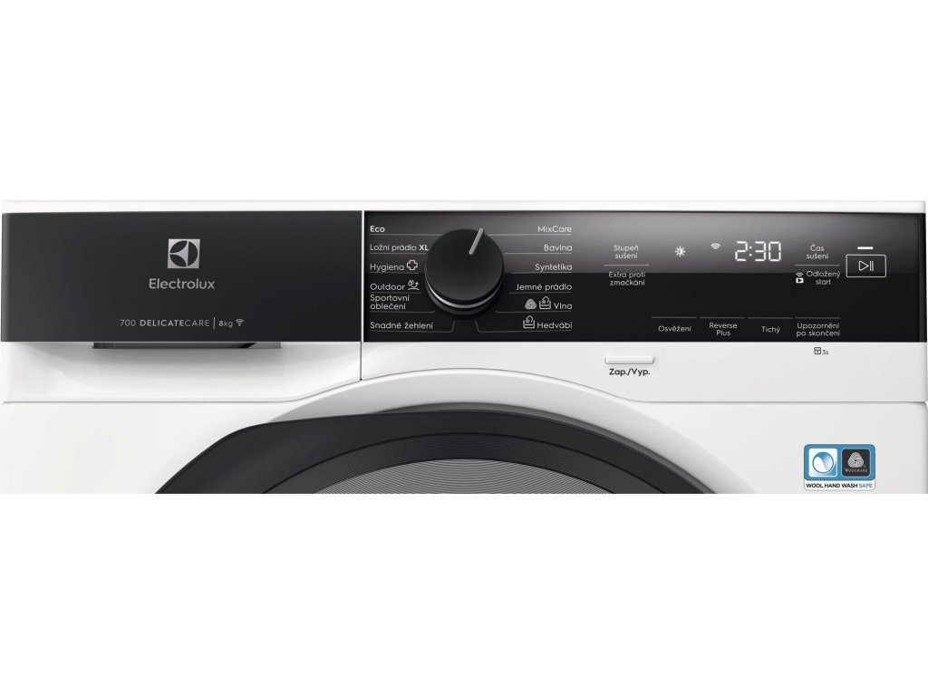 Chytré a pohodlné ovládání pak nabízí aplikace Electrolux. Sušicí cyklus můžete zapnout i dálku a průběžně na telefonu sledovat, v jaké fázi se zrovna nachází. Aplikace vám nabídne i cenná doporučení, jak pečovat o oblečení, aby co nejdéle vydrželo nebo tipy na šetření energií při sušení. Sušicí programy můžete nastavovat také manuálně pomocí velkého otočného knoflíku na moderním panelu v černém provedení. Dotykem pak volíte dodatečné funkce (např. různé stupně vysušení nebo nastavení odloženého startu). Také tu najdete informace o zbývajícím času sušení, nutnosti vyčistit filtr nebo vylít nádobku s vodou.