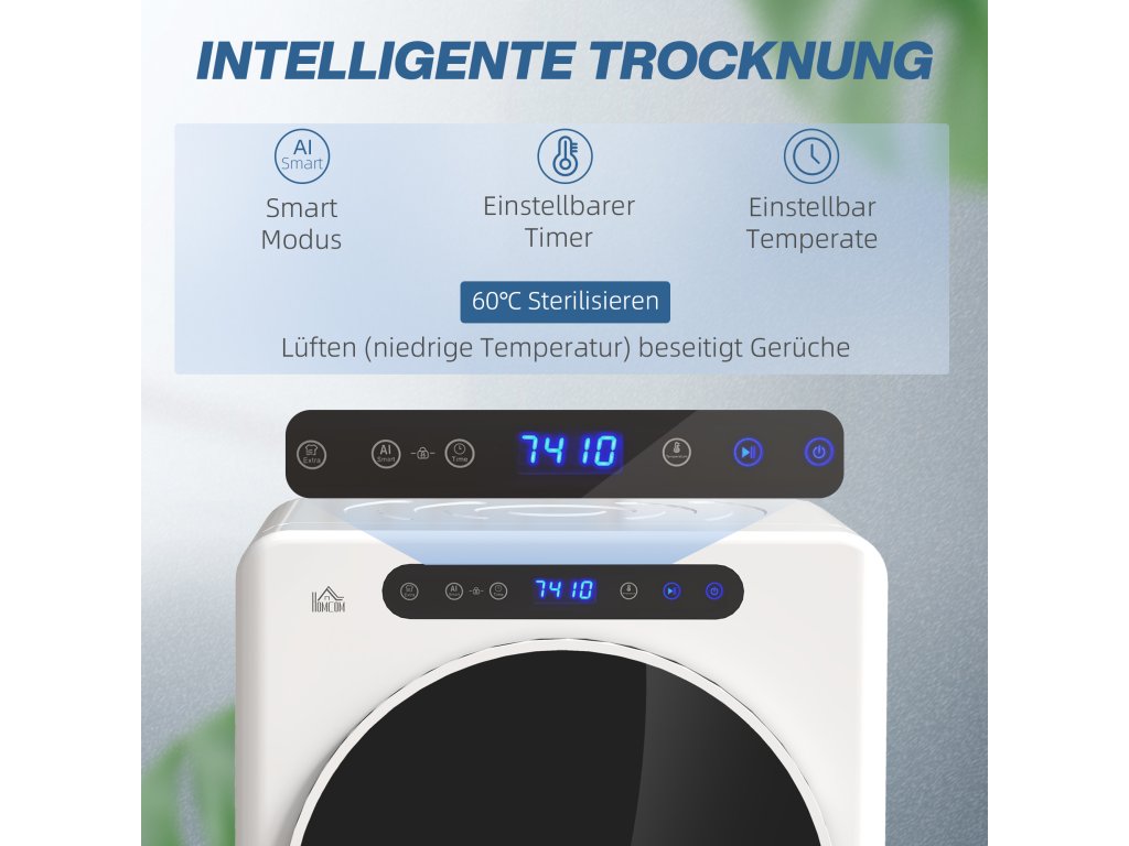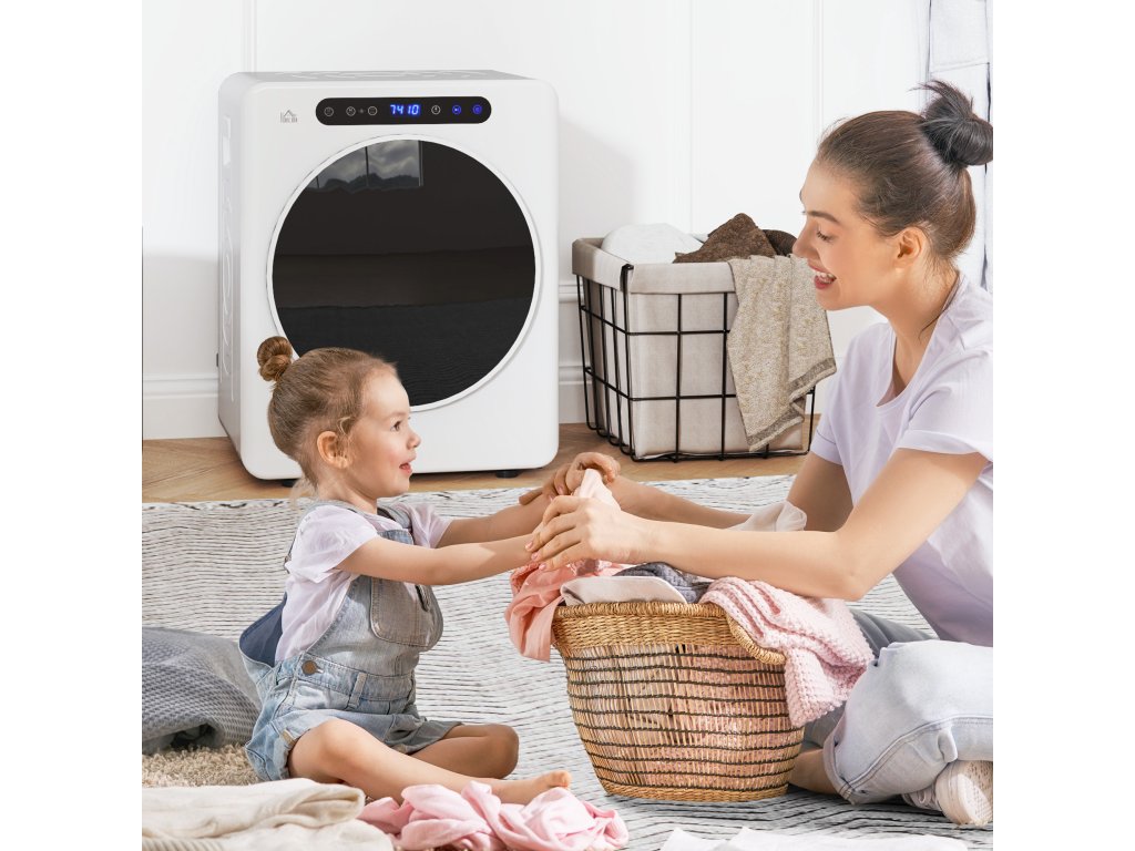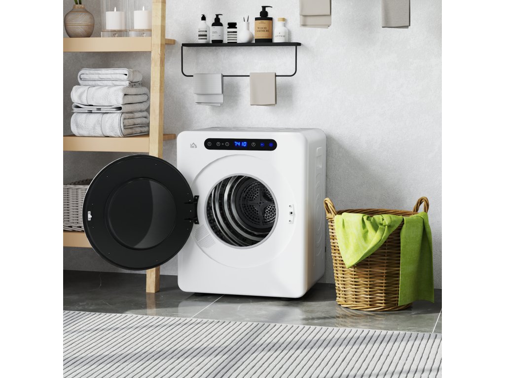 Sušička prádla HOMCOM, 6 programů, 40–60 °C, kapacita 3 kg, kompaktní, dotykové ovládání, bílá