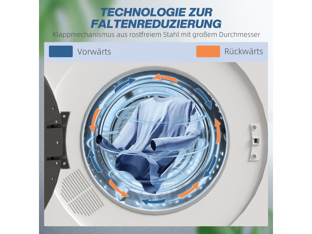 Kompaktní, prostorově úsporný design: Přenosná sušička s odvětráváním je ideální pro menší obytné prostory a byty. Lze ji používat volně stojící nebo stojící se stojanem (stojan není součástí dodávky).