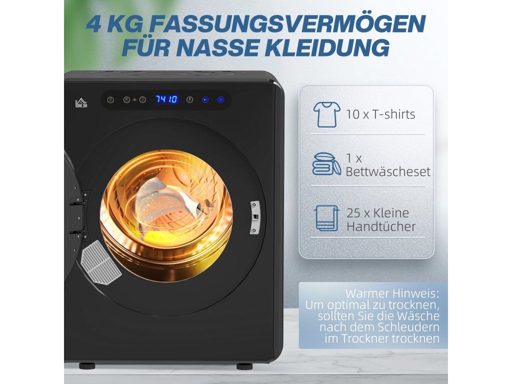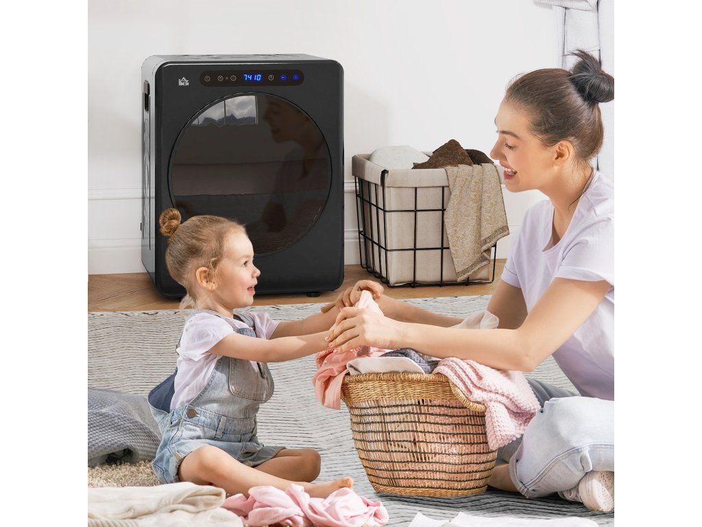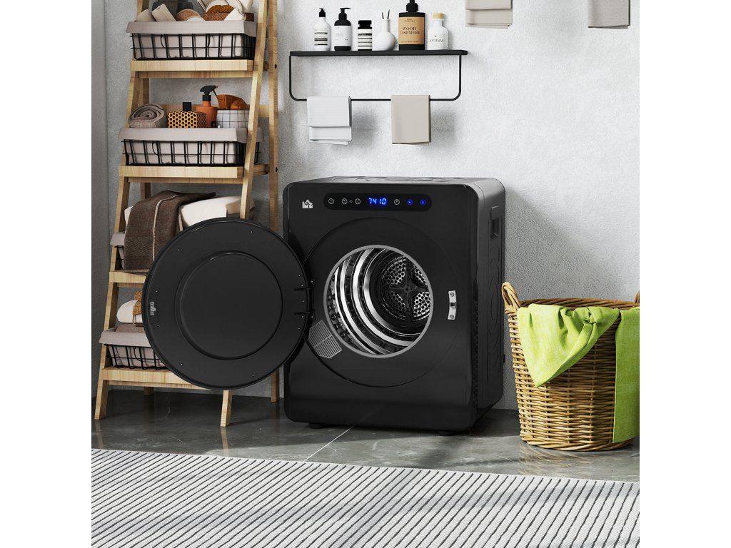 Sušička prádla HOMCOM, 6 programů, 40–60 °C, kapacita 3 kg, kompaktní, dotykové ovládání, černá