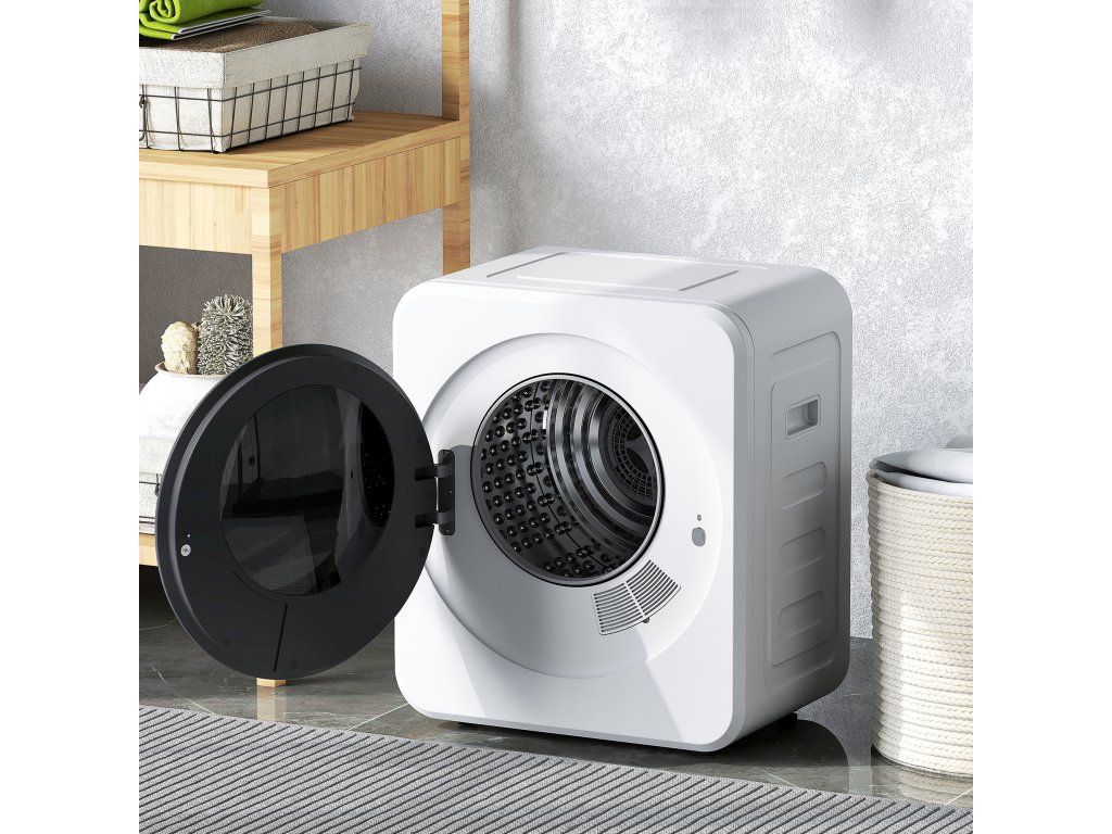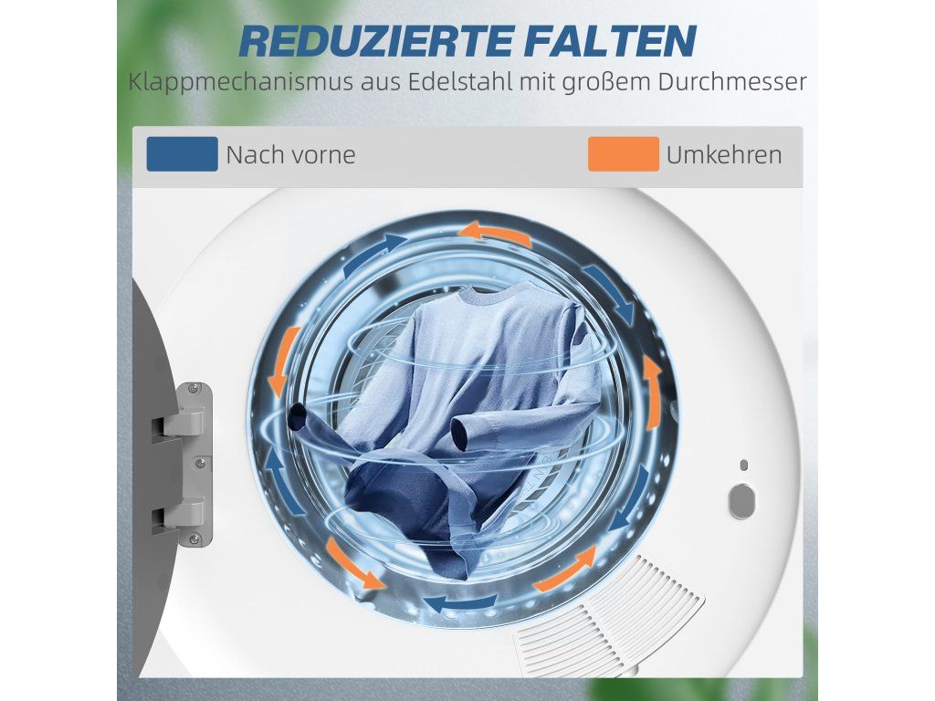 Sušička prádla HOMCOM s odvětrávaným otvorem, 4 kg sušička prádla s předním plněním a bubnem z nerezové oceli, 800 W kompaktní volně stojící, bílá