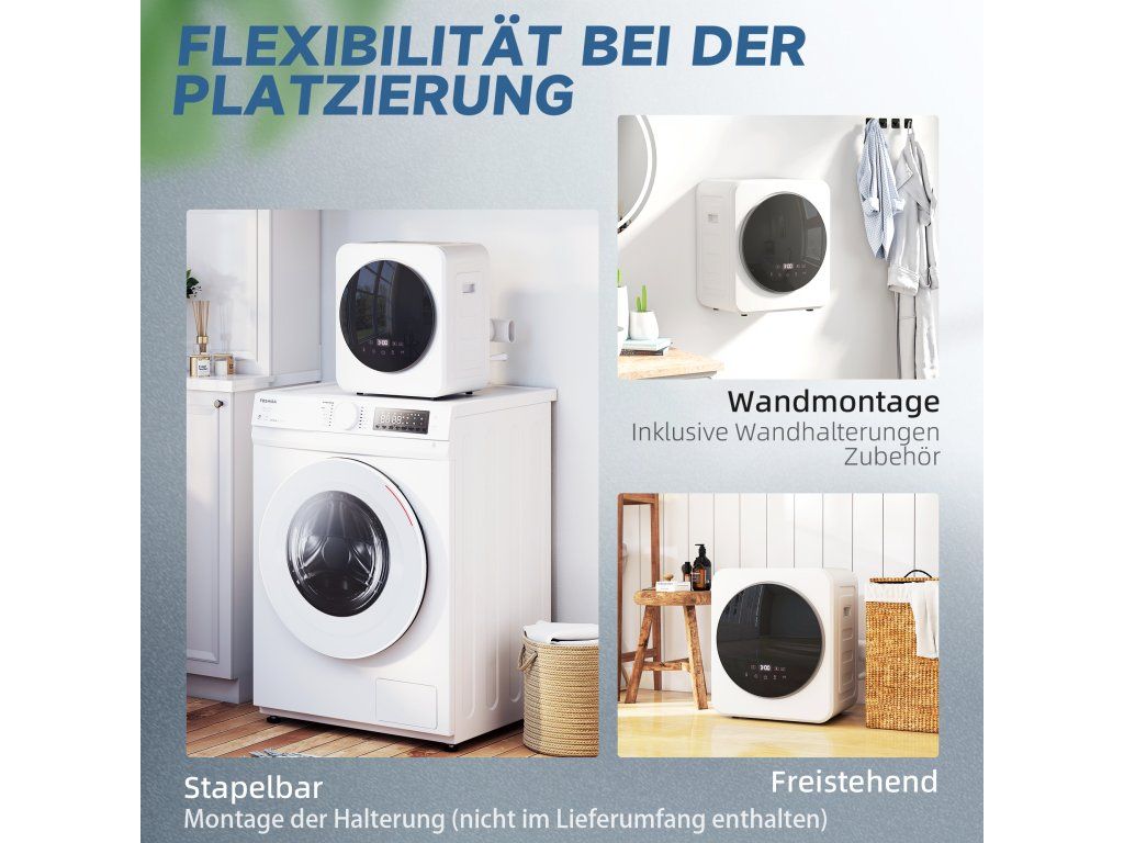Flexibilní instalace šetří místo: Tato přenosná sušička je ideální pro malé prostory. Lze ji používat volně stojící, stohovat pomocí držáku nebo namontovat na zeď pro flexibilní a prostorově úspornou instalaci.