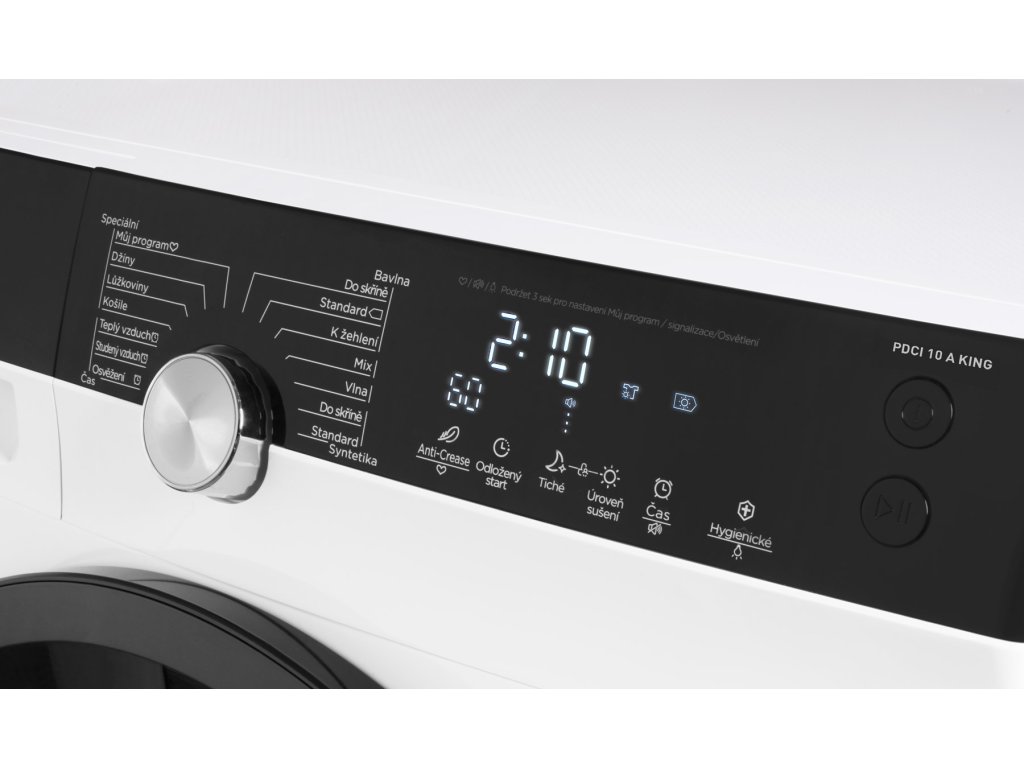 Kondenzační sušička s tepelným čerpadlem Philco PDCI 10 A King, v energetické třídě A+++, je určená pro sušení 10 kg prádla.