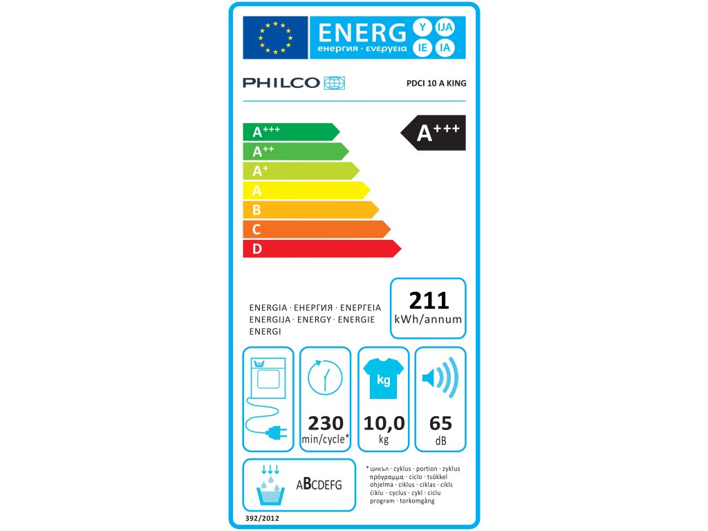 | Výkon motoru: | Kondenzační sušička prádla s tepelným čerpadlem Philco PDCI 10 A King, je v energetické třídě A+++ určeným pro sušení 10kg. Tato |