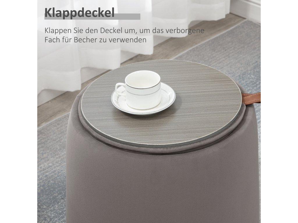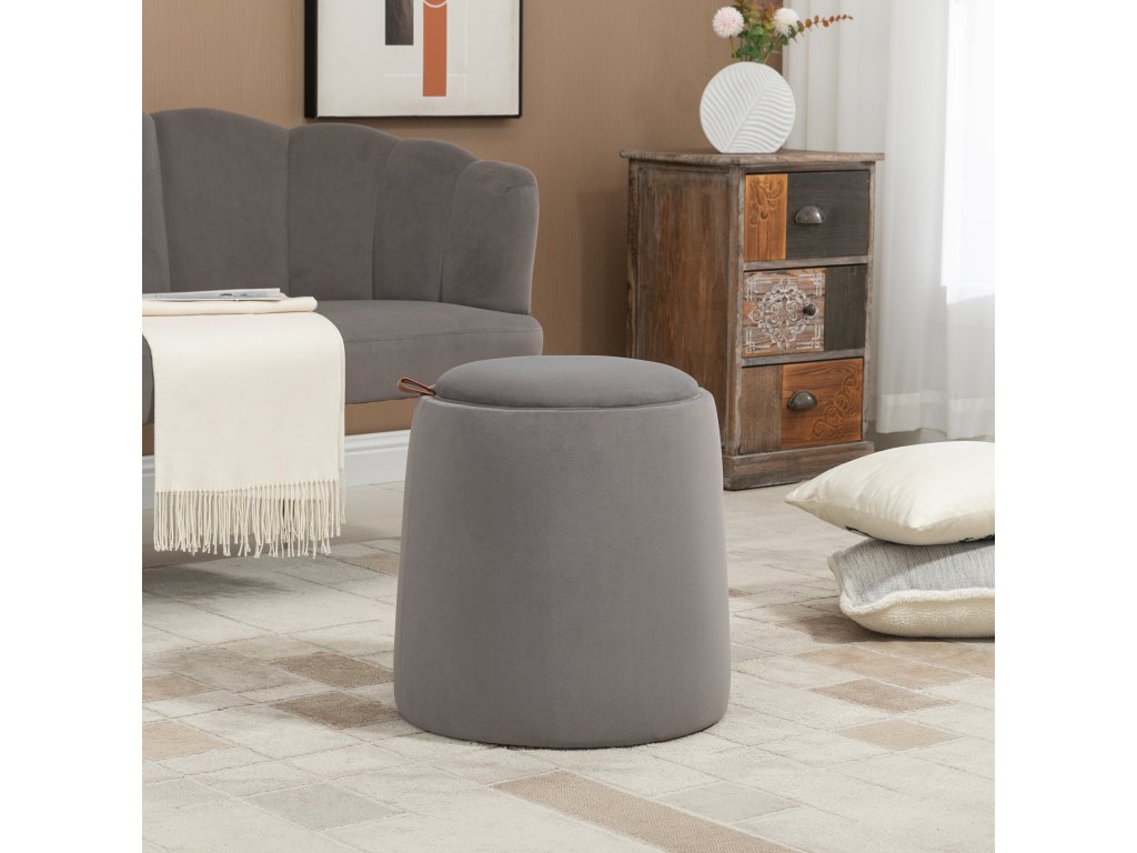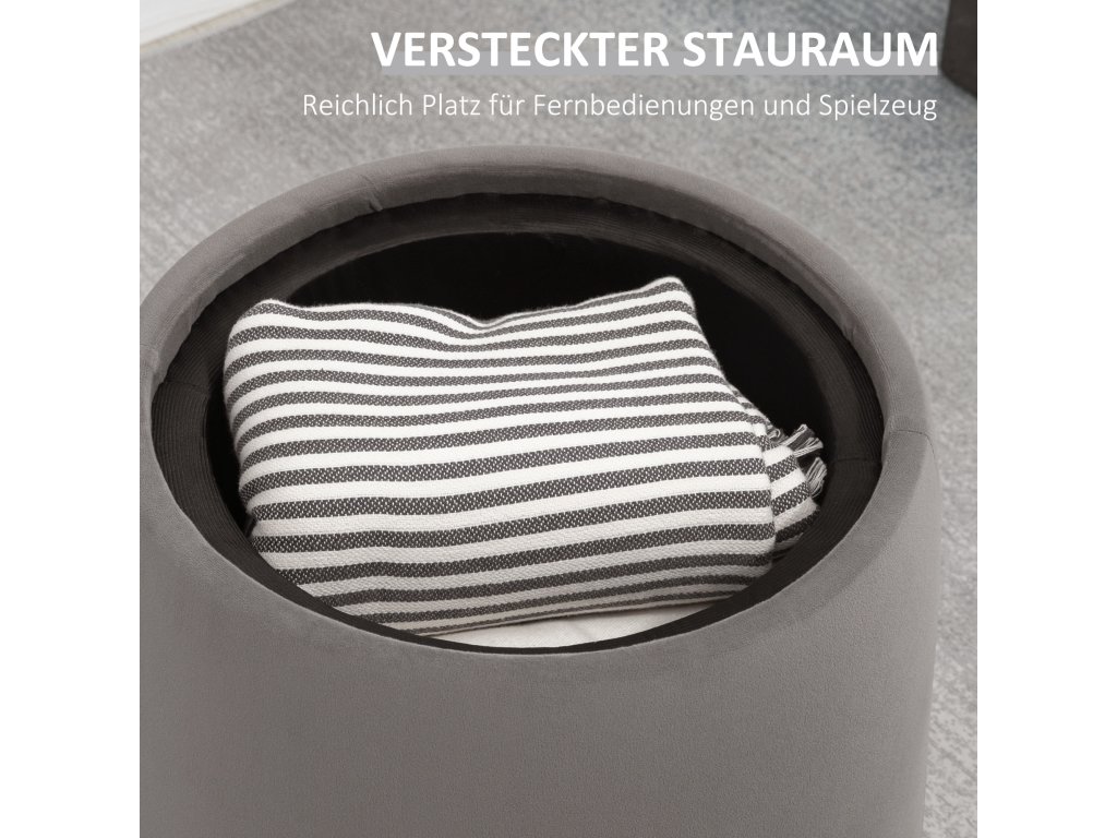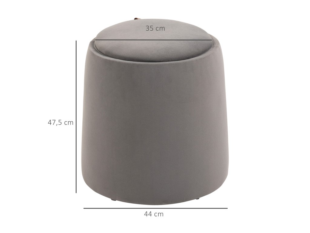 Taburet HOMCOM 2 v 1 v sametovém vzhledu, včetně úložného prostoru a odnímatelného víka Φ44 cm x 47,5 cm Šedý