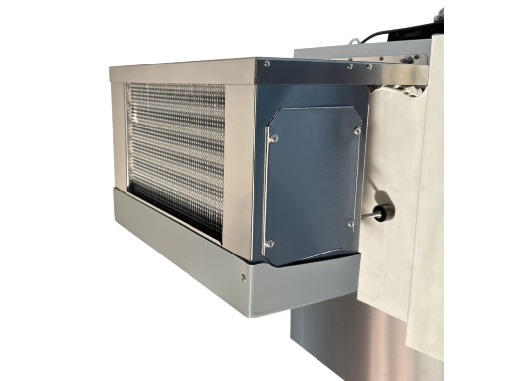 monobloková mrazicí jednotka, automatické odpařování kondenzátu, okolní teplota až +43 °C a 65% vlhkost vzduchu, digitální termostat a teplotní displej, nerezová povrchová úprava