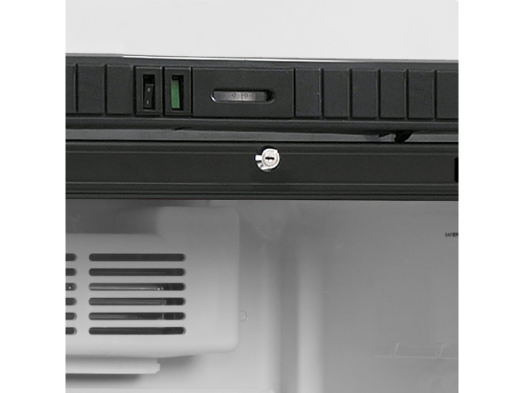 lze měnit otevírání dveří, nastavitelné police, nastavitelné nožky, vnitřní LED osvětlení, prosklené křídlové dveře s hliníkovým rámem, chlazení s pomocným ventilátorem, zámek