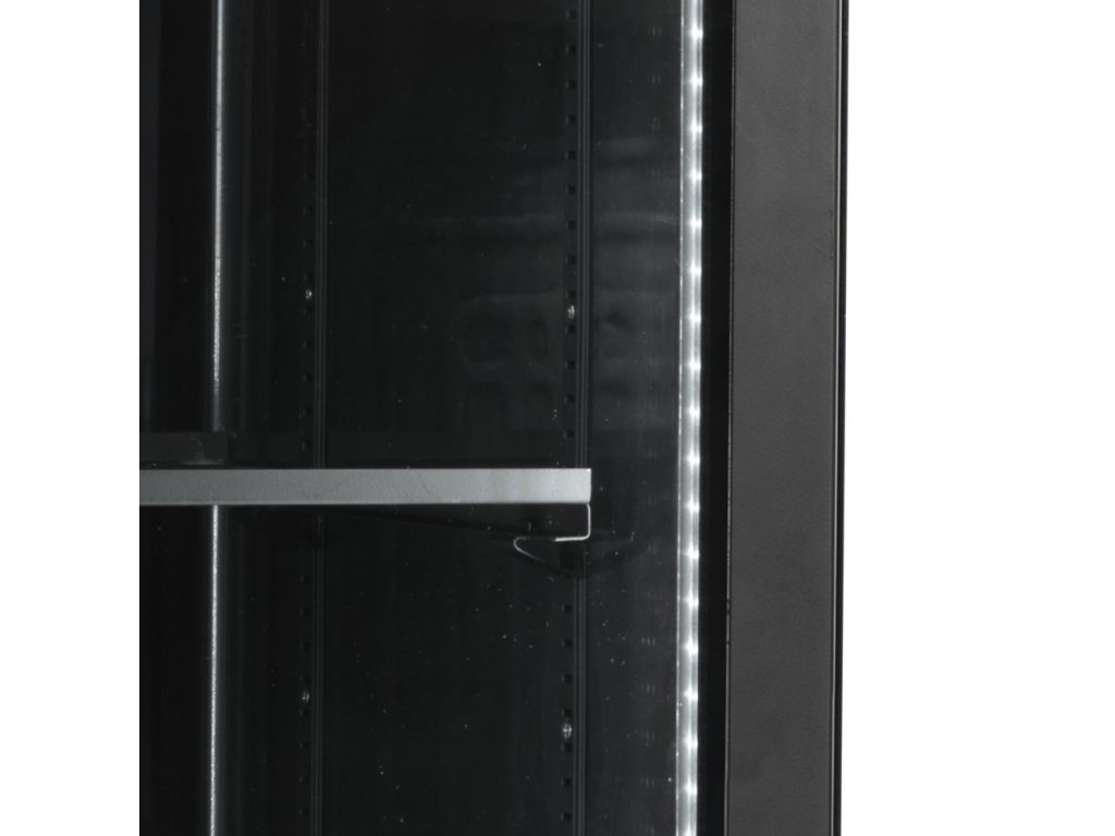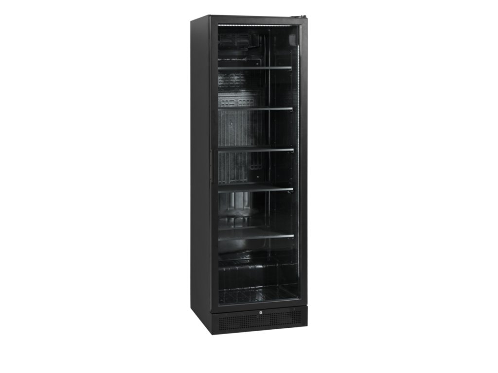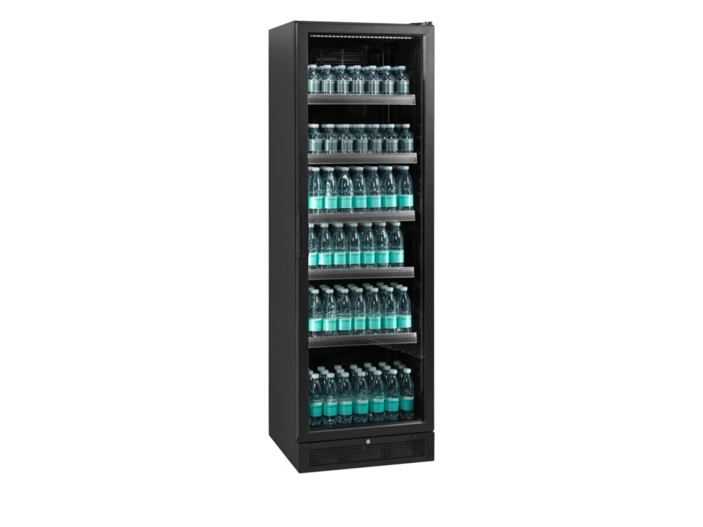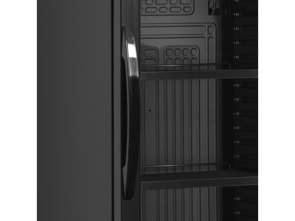 Chladicí prosklená skříň TEFCOLD SCU 1425 H v černé barvě je skvělá volba pro vystavení zboží k prodeji. Vnitřní LED osvětlení je zasazeno do rámu dveří a osvětluje produkty zepředu (jeden svislý pruh na každé straně a jeden vodorovný přes horní stranu). Černý exteriér zvyšuje kontrast mezi chlaničkou a osvětlenými produkty uvnitř, díky čemuž vystavené zboží vyniká a přitahuje pozornost. Chlazení s pomocným ventilátorem zajišťuje rovnoměrné chlazení v prostoru celé skříně.elegantní design, vynikající prezentace produktů, černý interiér a exteriér, mimořádně vysoké prosklené dveře, prosklené křídlové dveře s hliníkovým rámem, vnitřní svislé a vodorovné LED osvětlení, chlazení s pomocným ventilátorem