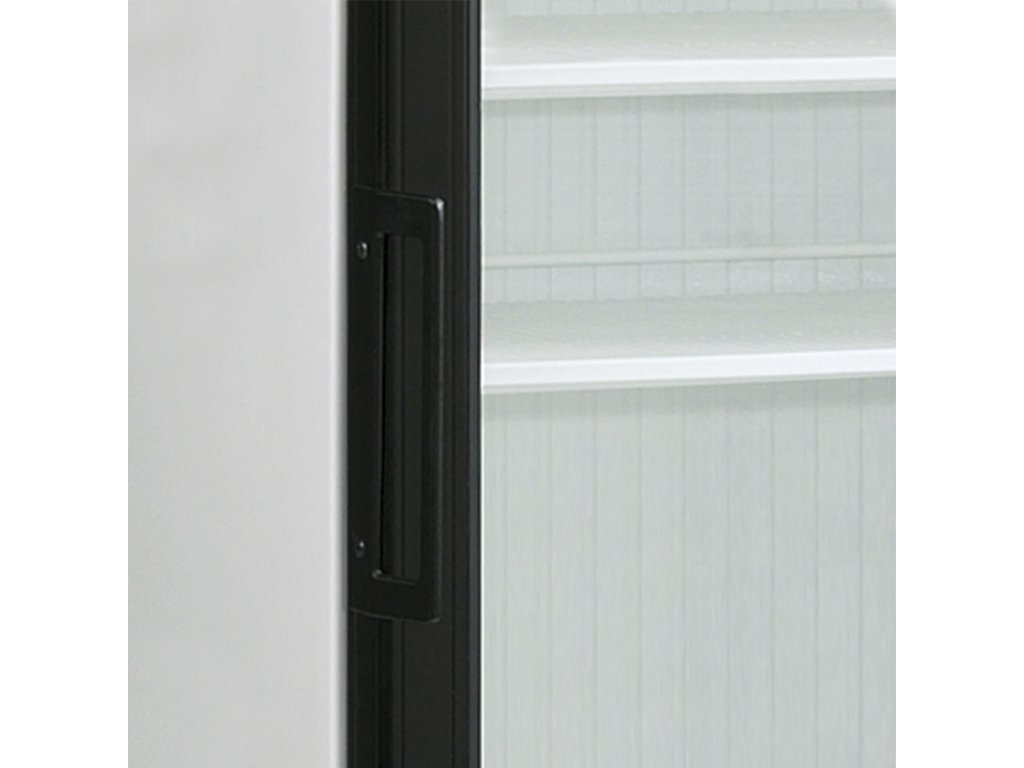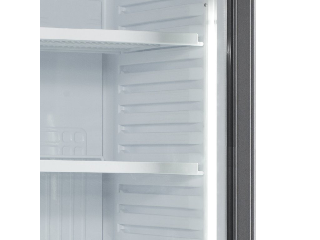 prosklené křídlové dveře, světelný reklamní panel, lze měnit otevírání dveří, nastavitelné police, nastavitelné nožky, chlazení s pomocným ventilátorem, zámek