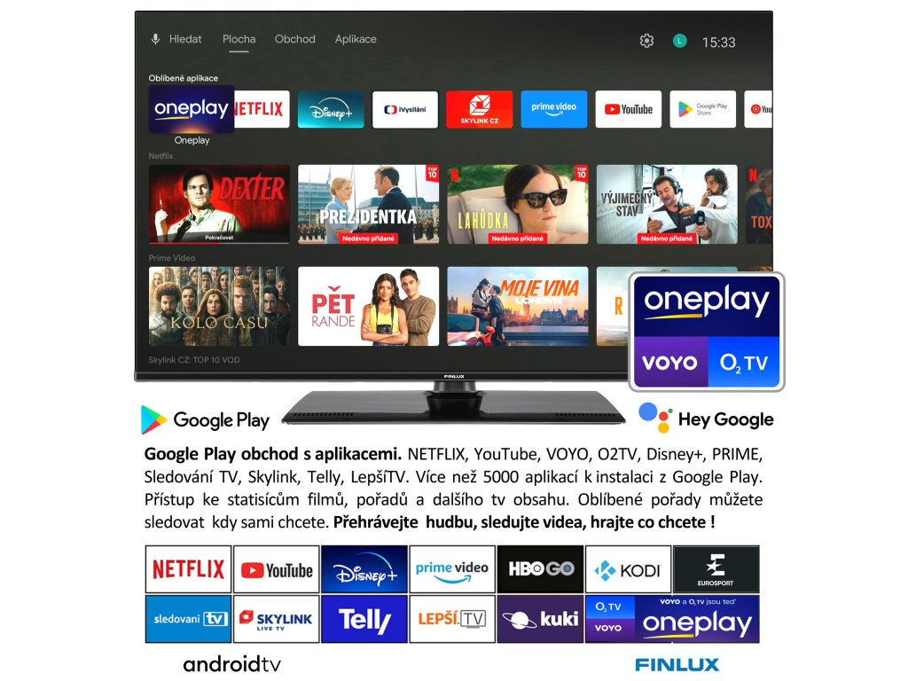 Televize Finlux TV50FUI7071 - ANDROID11 UHD, HDR,T2/SAT BEZRÁMOVÁ -