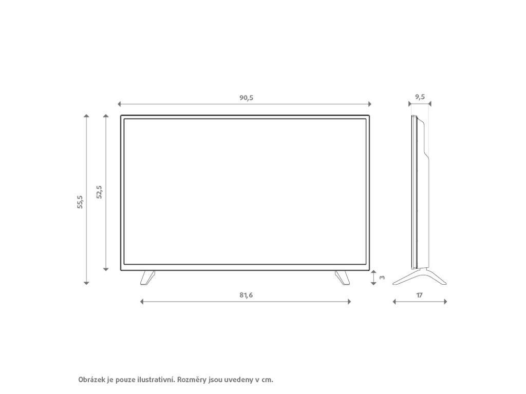 TV s FULL HD rozlišením (1920x1080), úhlopříčka 100 cm, DVB-C/T/T2 (H.265), 2x HDMI, 1x USB