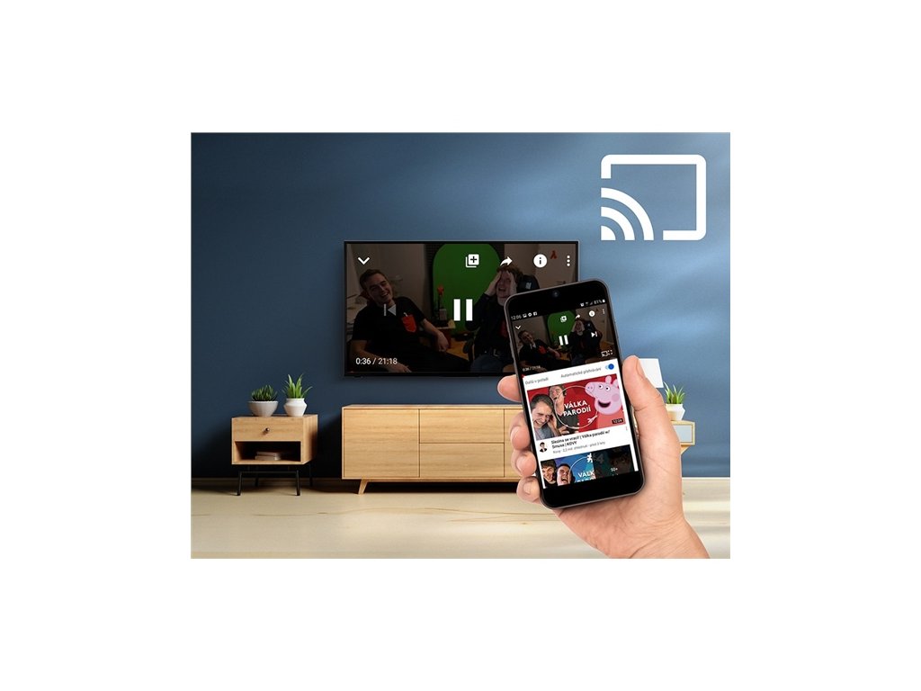 Vestavěná funkce Chromecast umožňuje snadný přenos fotografií, videí, hudby a dalšího oblíbeného obsahu z vašeho zařízení přímo do televizoru.