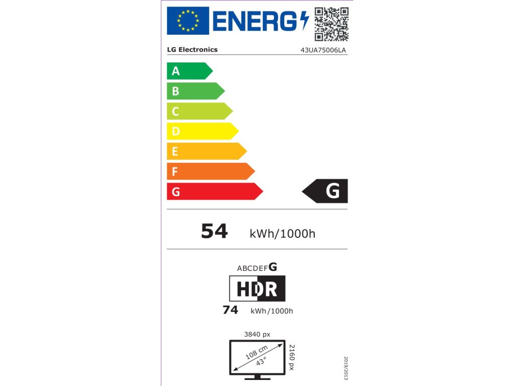 | Úhlopříčka obrazovky: | 108 cm (43") |