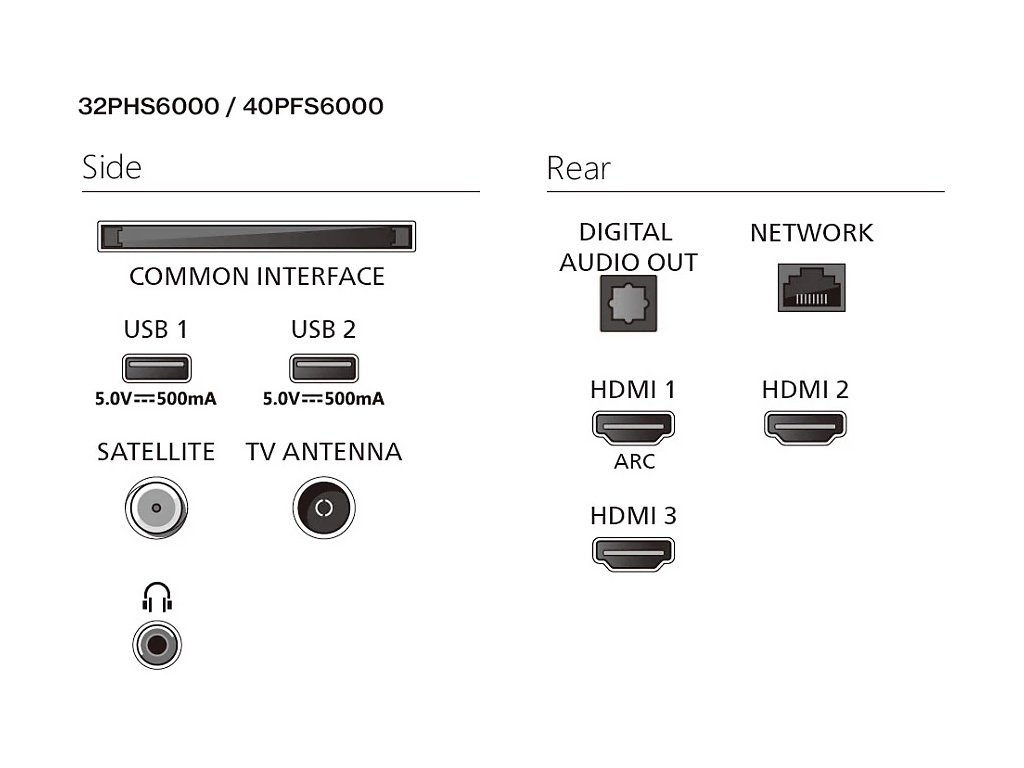 32" (80 cm) úhlopříčka • Smart TV Full HD (1920 × 1080 px) rozlišení • DVB-C/S2/T/T2 • kodek HEVC (H.265) • Direct LED podsvícení • HbbTV • HDR/HDR10/HLG • 3× HDMI • 2× USB • operační systém Titan OS • Casting by AirServer • Miracast • Wi-Fi • LAN • Netflix • YouTube • VESA 100 × 100