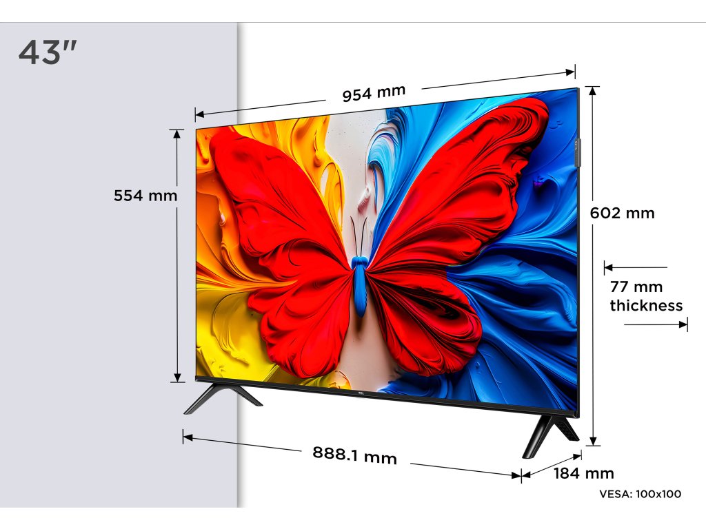 Rozměry bez podstavce (VxŠxH) 55,4 x 95,4 x 7,7 cm
