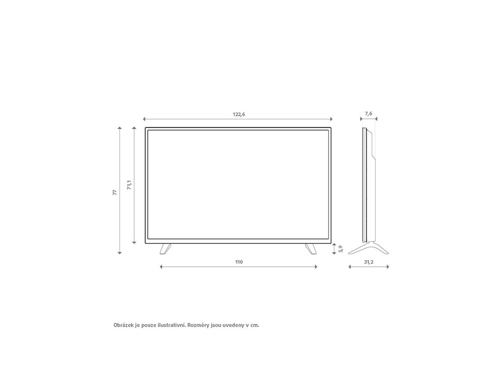 • Rozměry (bez základny): 1 226 x 76 x 711 mm