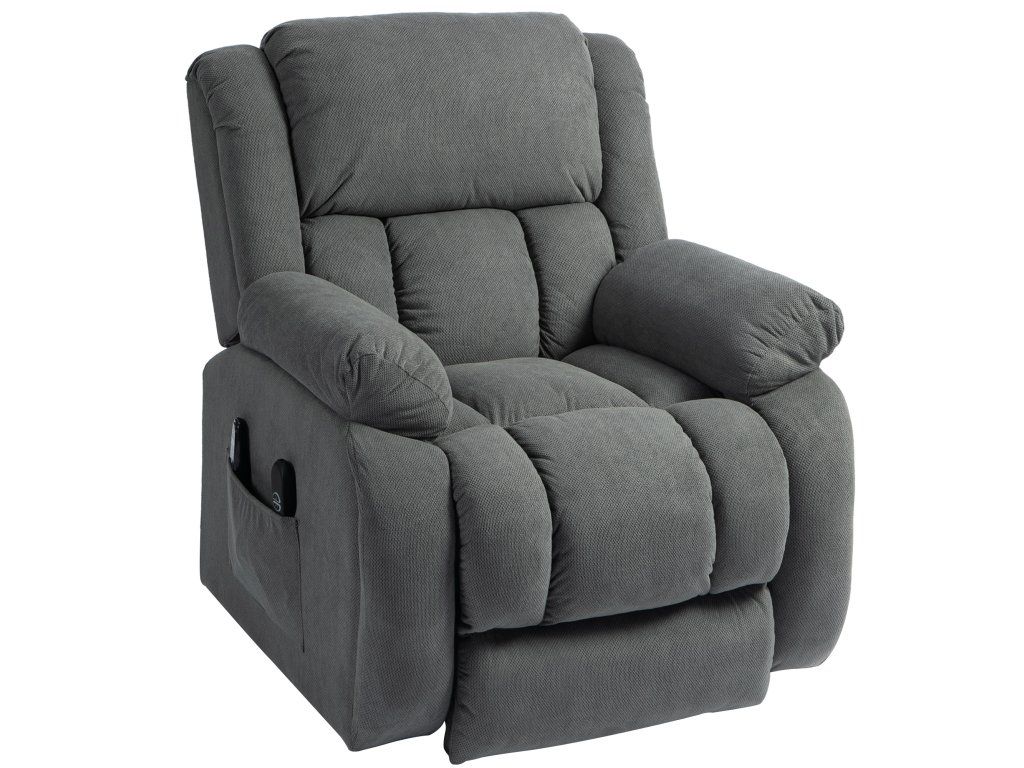 Televizní křeslo HOMCOM s masážní a vyhřívací funkcí, elektrické stojací křeslo, dálkové ovládání, boční kapsy, šedá barva
