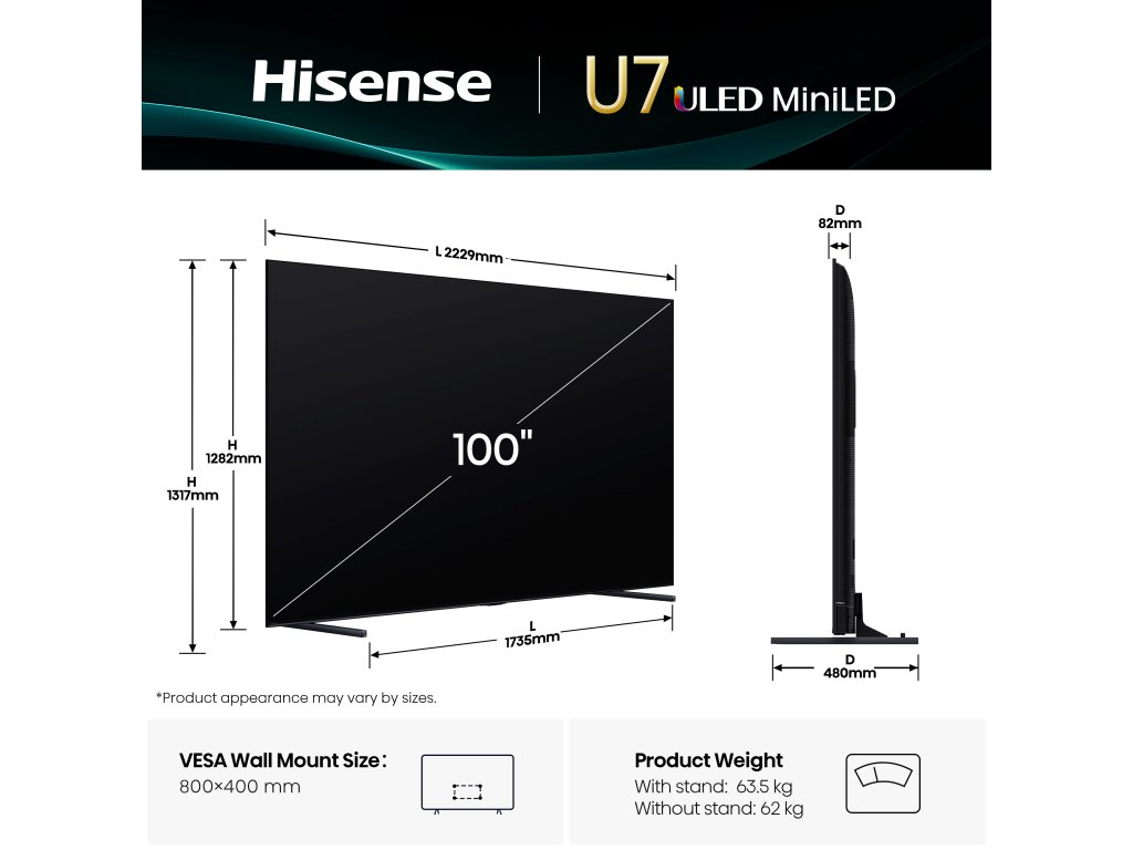 Rozměry bez podstavce (VxŠxH) 128,4 x 222,9 x 9,5 cm