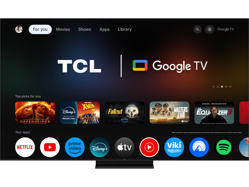 Aplikace Antik TV, Apple TV, Canal+, Disney Plus, EUROSPORT Player, Facebook Watch, FilmBox, Google Play, HBO Max, iVysílání, Kodi, Kuki, Lepší.TV, Magenta TV , Magio TV , Netflix, O2 TV, Prima +, Prime Video, Rakuten TV, Red Bull, Seznam TV, Skylink, Skylink Live TV, SkyShowtime, Sledovani.tv, Spotify, Telly, TikTok, Twitch, UEFA TV, VLC, Voyo, YouTube, YouTube Kids, Oktagon TV
