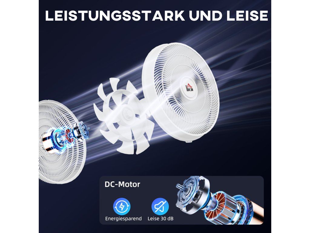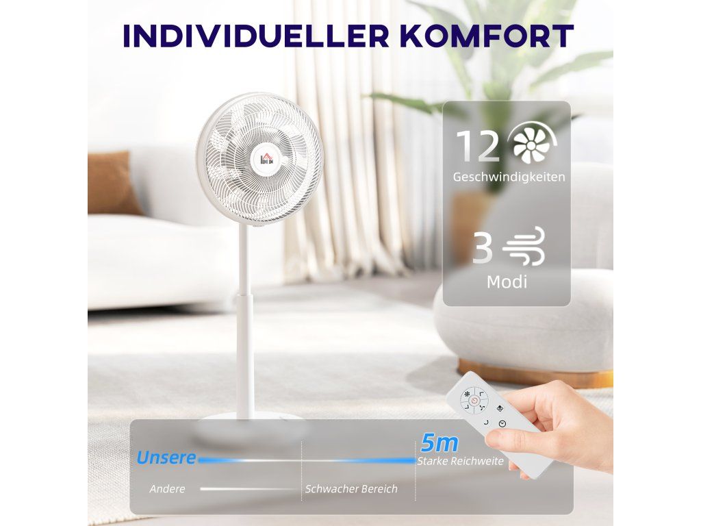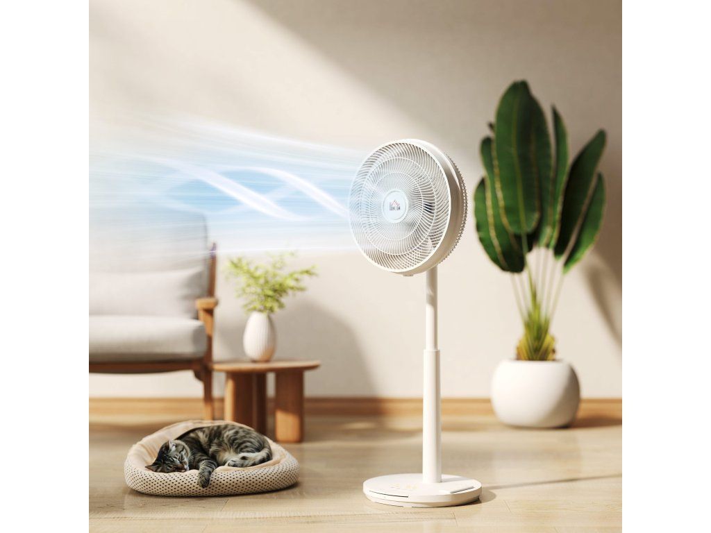 Zažijte klidnou atmosféru se stojanovým ventilátorem HOMCOM, který díky svému stejnosměrnému motoru poskytuje energeticky úsporné a sotva slyšitelné proudění vzduchu. Tři volitelné režimy, včetně možnosti režimu spánku a 12 snadno nastavitelných rychlostí pomocí dálkového ovládání, poskytují ideální proudění vzduchu kdykoli. Funkce otáčení ventilátoru a nastavitelná naklápěcí hlava umožňují efektivní chlazení v každém rohu místnosti.