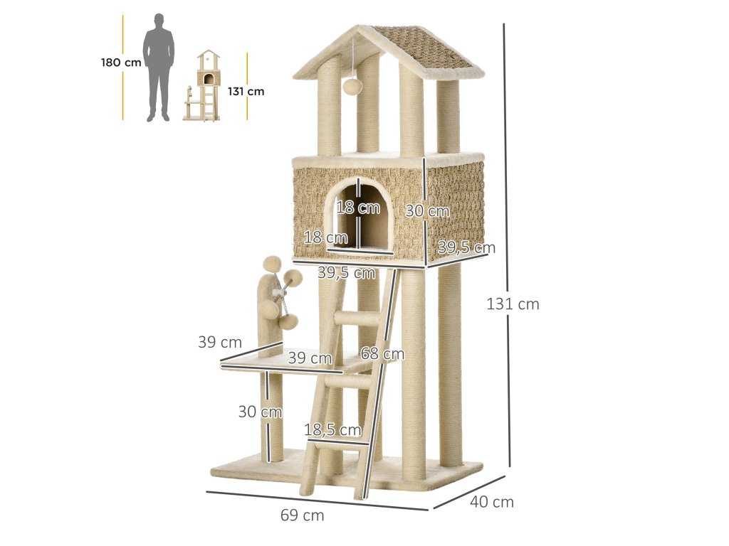- ÚDAJE O VÝROBCI: Celkové rozměry: 69L x 40W x 131H cm; Velikost kočičího domečku: 39,5L x 39,5W x 30H cm. Vhodné pro kočky s hmotností nižší než 5 kg. Vyžaduje snadnou montáž.
